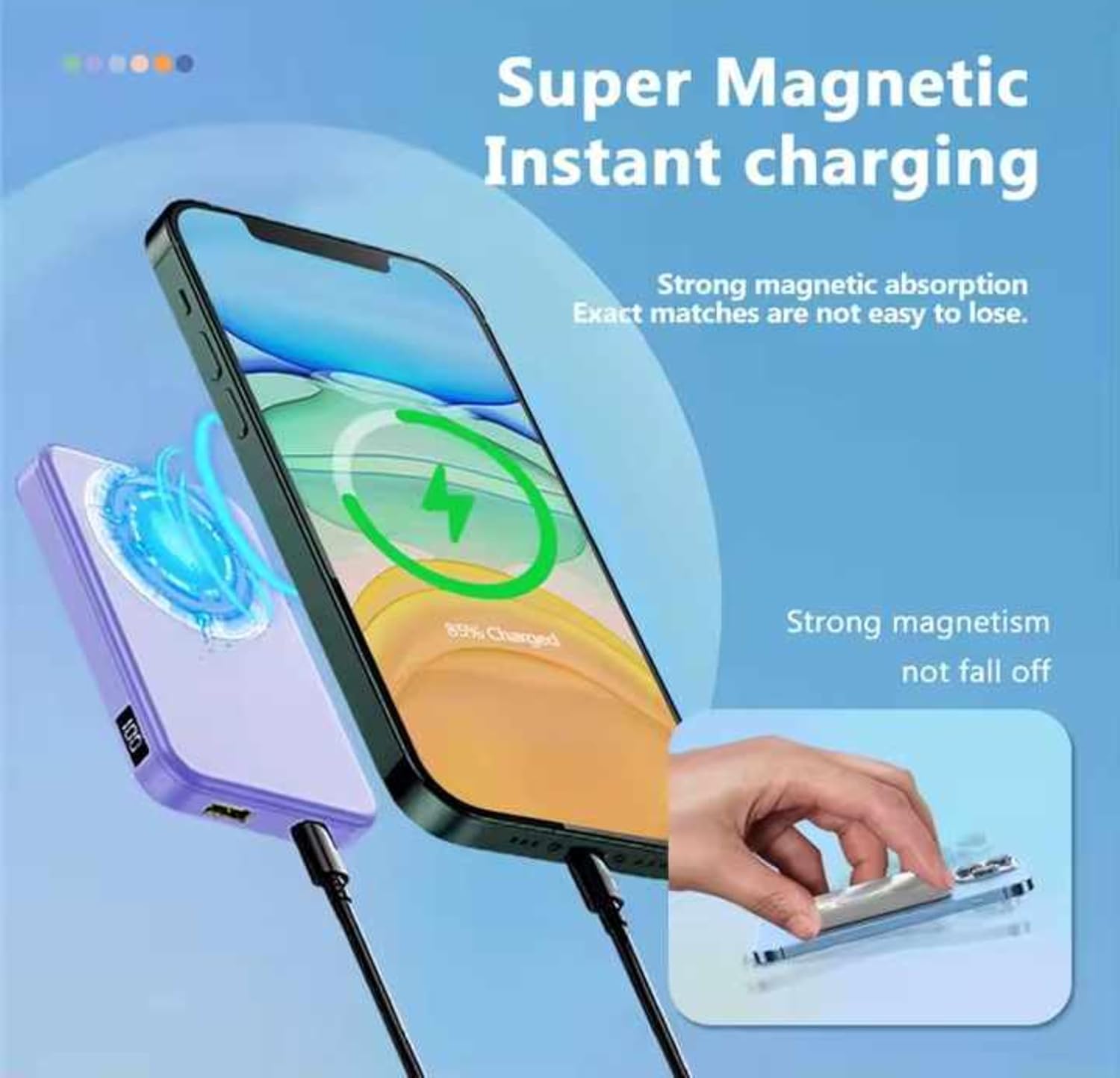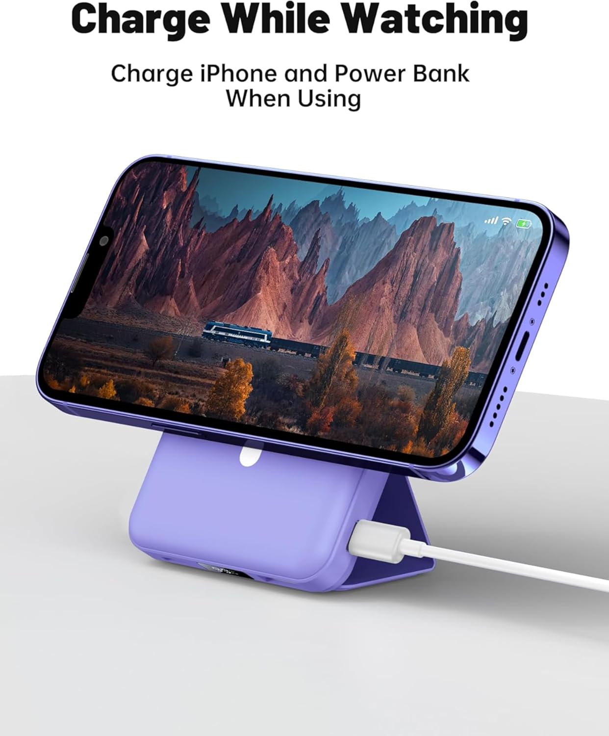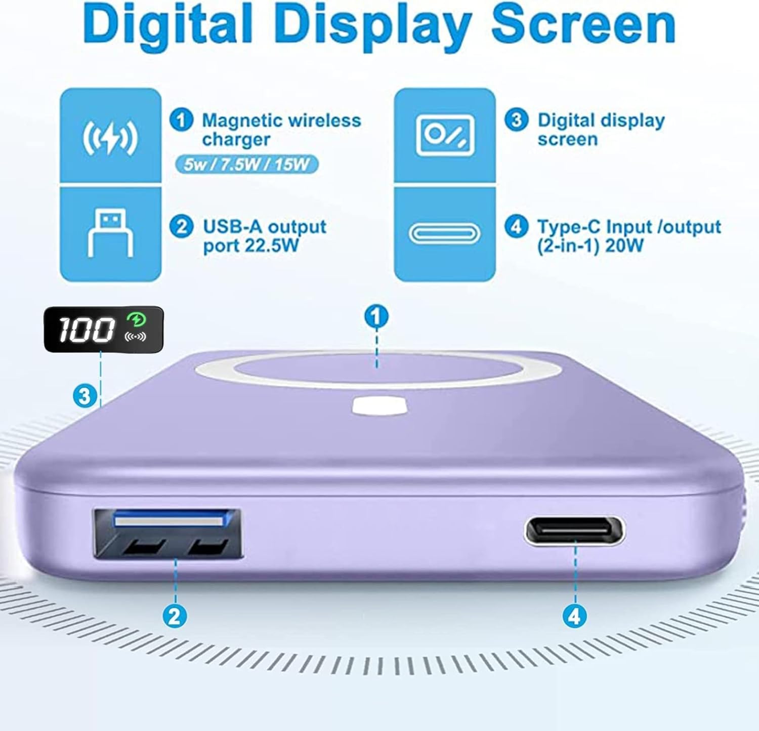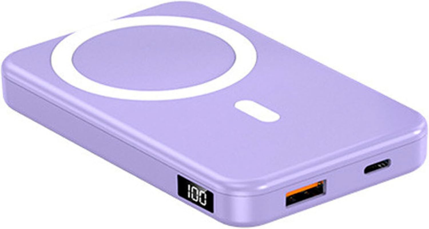 باور بانك لاسلكي مغناطيسي 5000 مللي امبير في الساعة 20 واط، شاحن محمول ومدخل USB نوع C وشاشة LED لسلسلة ايفون 15/14/13/12 | باور بانك سريع الشحن للجوال (ارجواني)