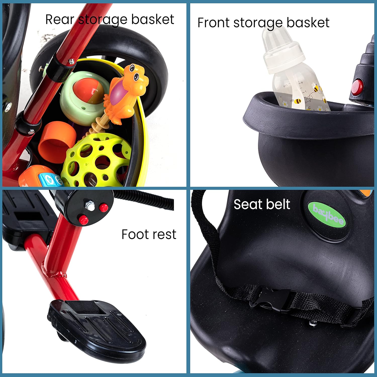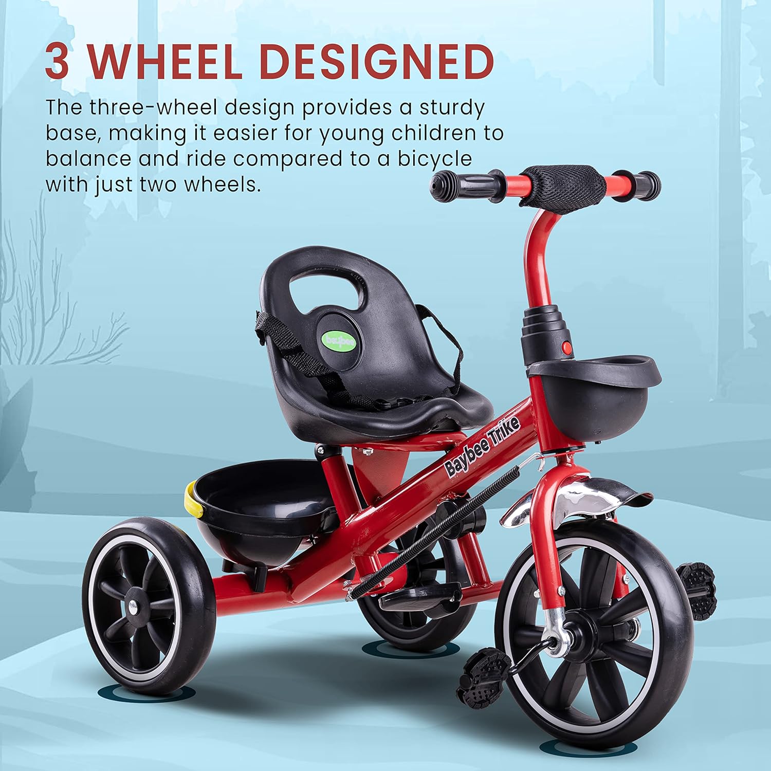 بايبي دراجة ثلاثية العجلات ذكية بخاصية التوصيل والتشغيل للاطفال، دراجة للاطفال مع مساحة تخزين ومقبض دفع للوالدين | دراجة ثلاثية العجلات للاطفال | دراجة اطفال للاطفال من سن 2 الى 5 سنوات للاولاد