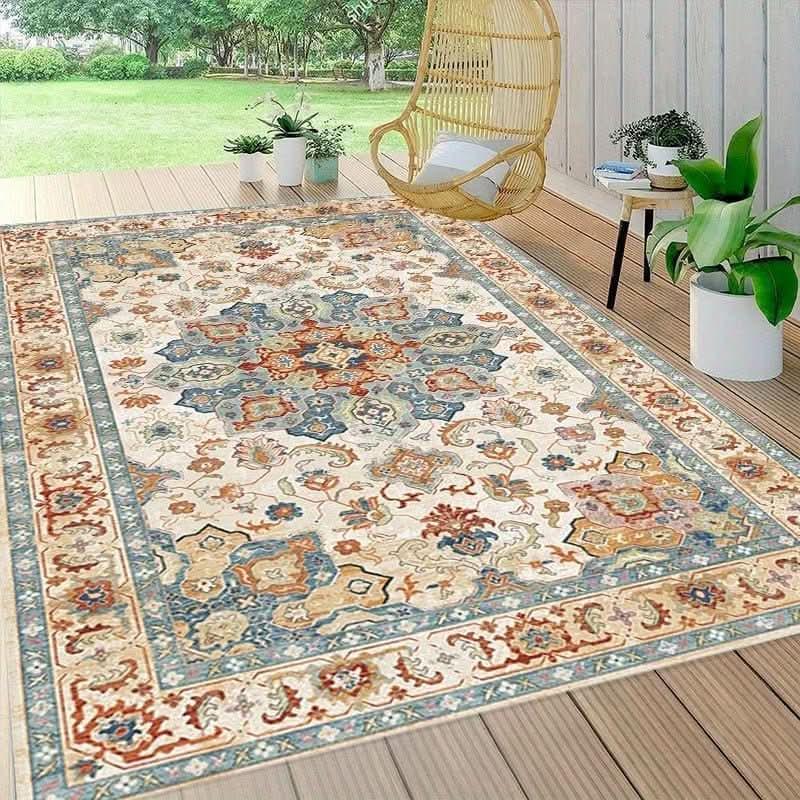 1pc Boho Area Carpet, Machine Washable, Vintage Oriental Distressed Non - Shedding Living Room Bedroom Dining Home Office Rug, Large Floor Carpet, Aesthetic Room Decor, Home Decor - Nimall
