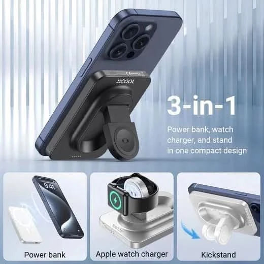 بنك طاقة لاسلكي مغناطيسي 3 في 1: يجمع بين بنك طاقة فعال وشاحن Apple Watch محمول وحامل سهل الاستخدام لتلبية احتياجات الشحن السهلة والمتنوعة.