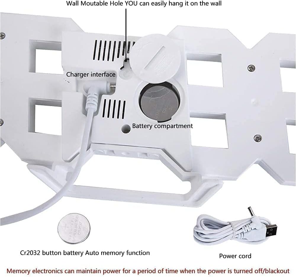 Desk or Wall Mount: It has notches on the back for mounting, stand is removable. Built-in a battery for recording time when cutting off power, the clock is powered by USB cable only.