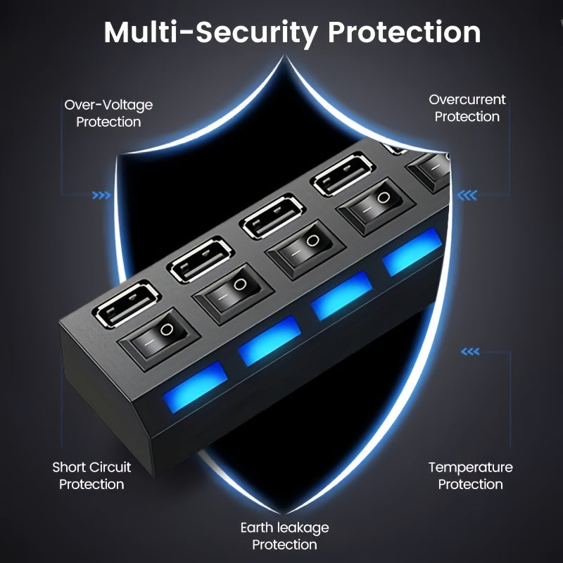 -High speed 7 ports USB 2.0 HUB with ON/OFF switch, easy to control.