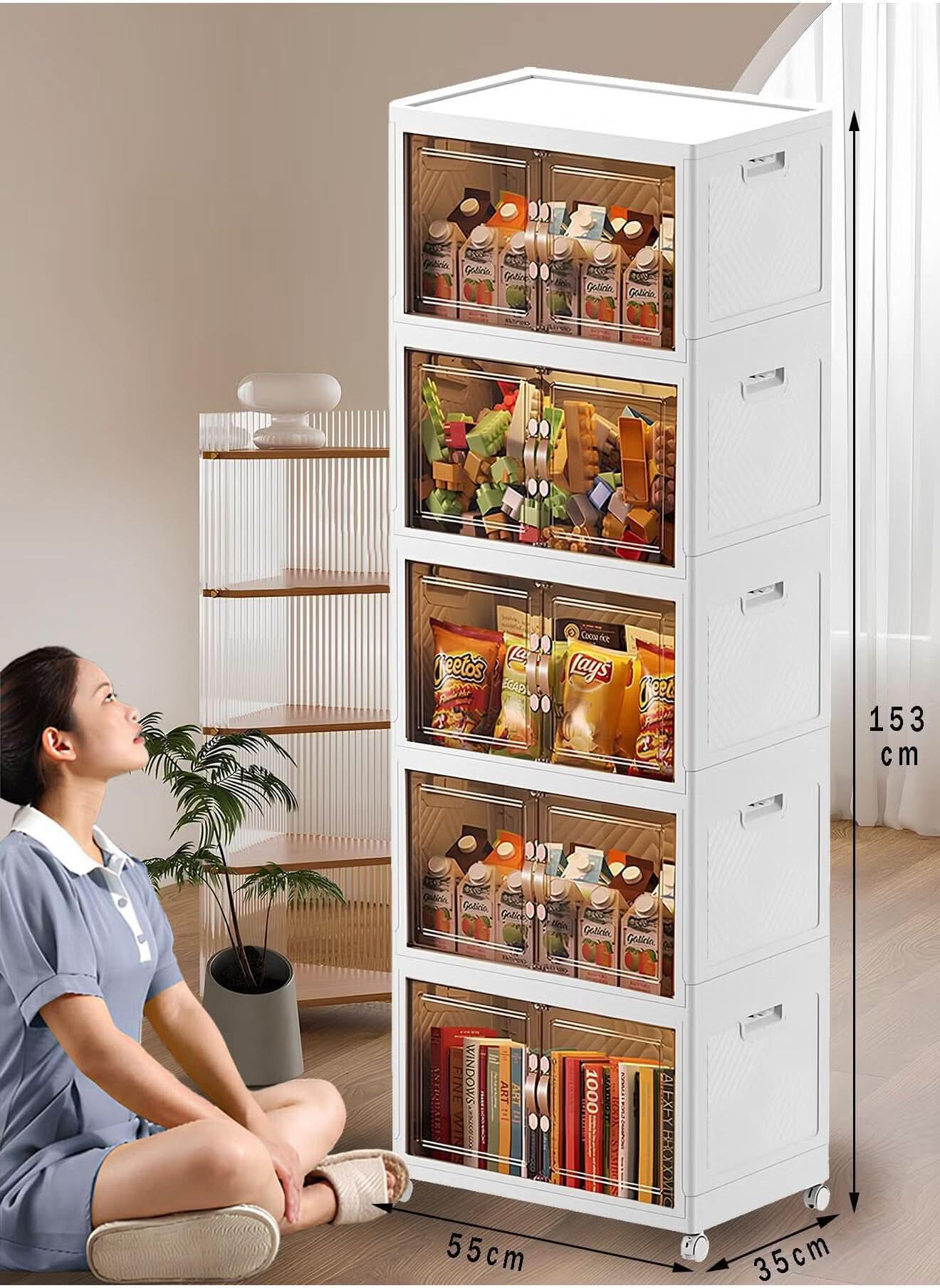 • يمكن فتح حاويات تنظيم التخزين البلاستيكية هذه بطريقتين، حيث يمكن فتح صندوق التخزين القابل للطي من الغطاء العلوي أو الأبواب الأمامية، ومن السهل الوصول إلى العناصر.