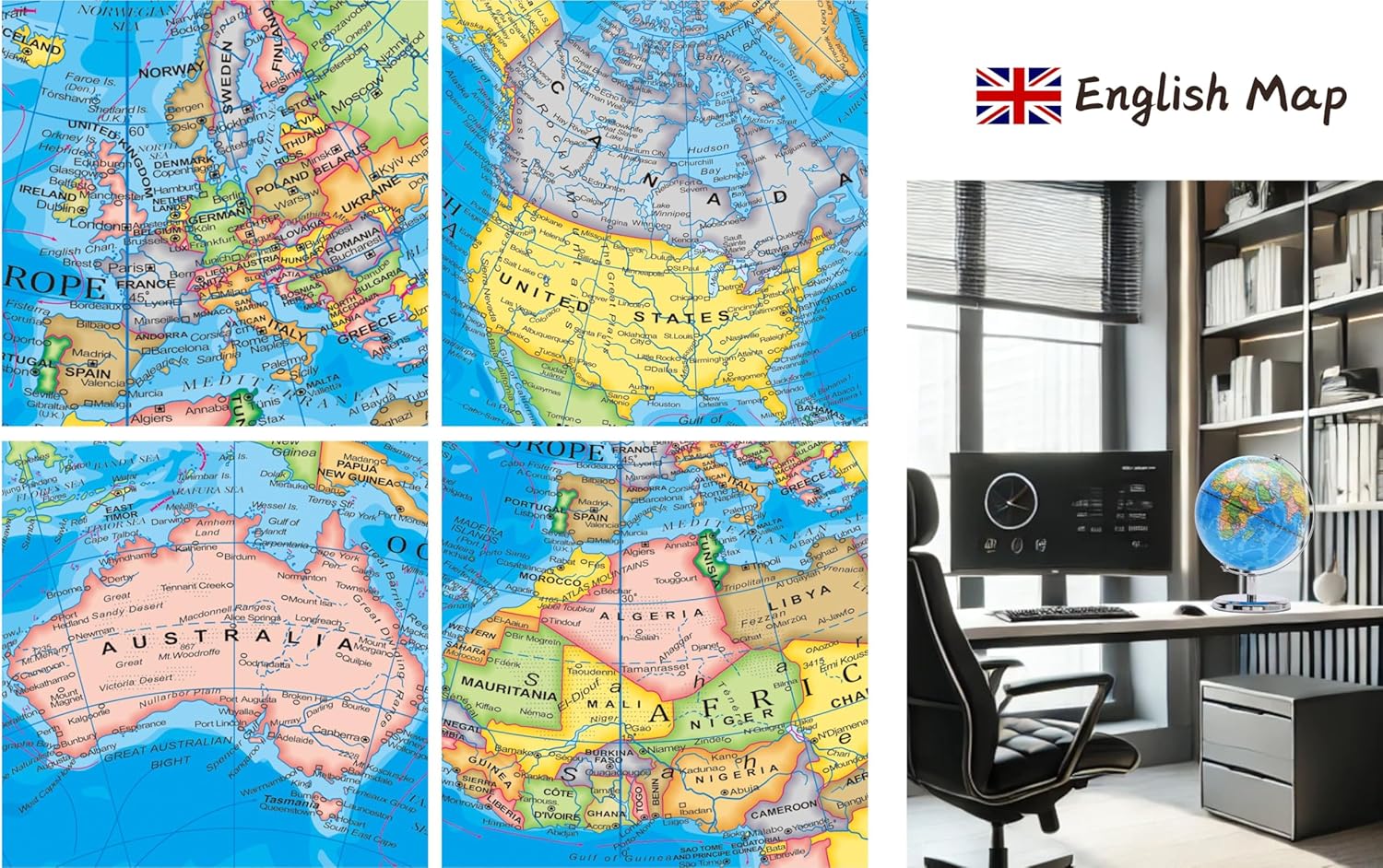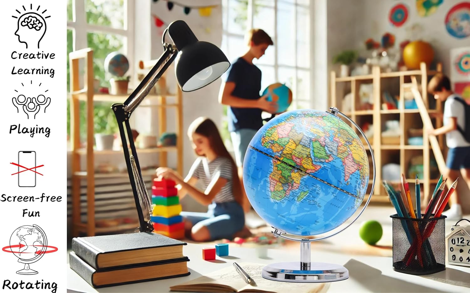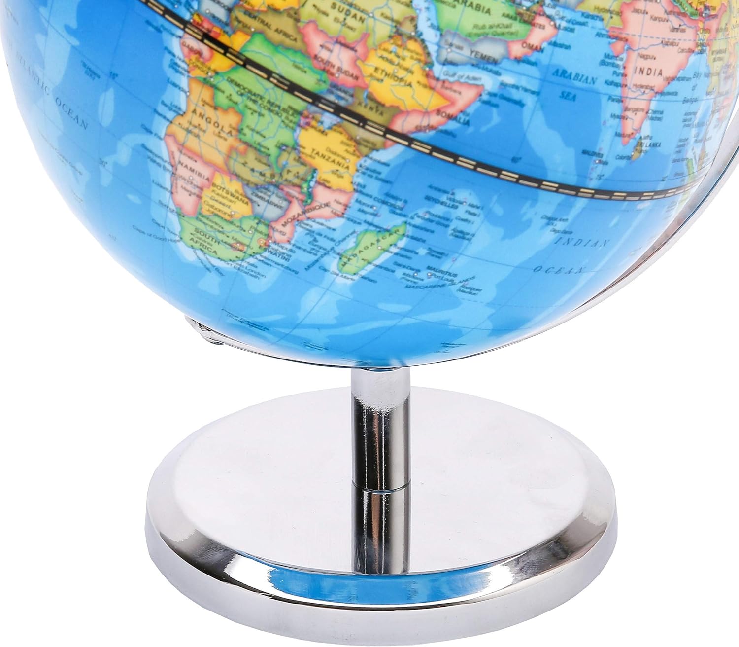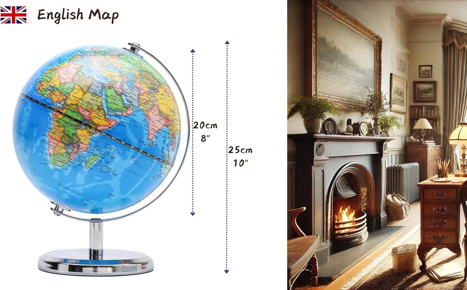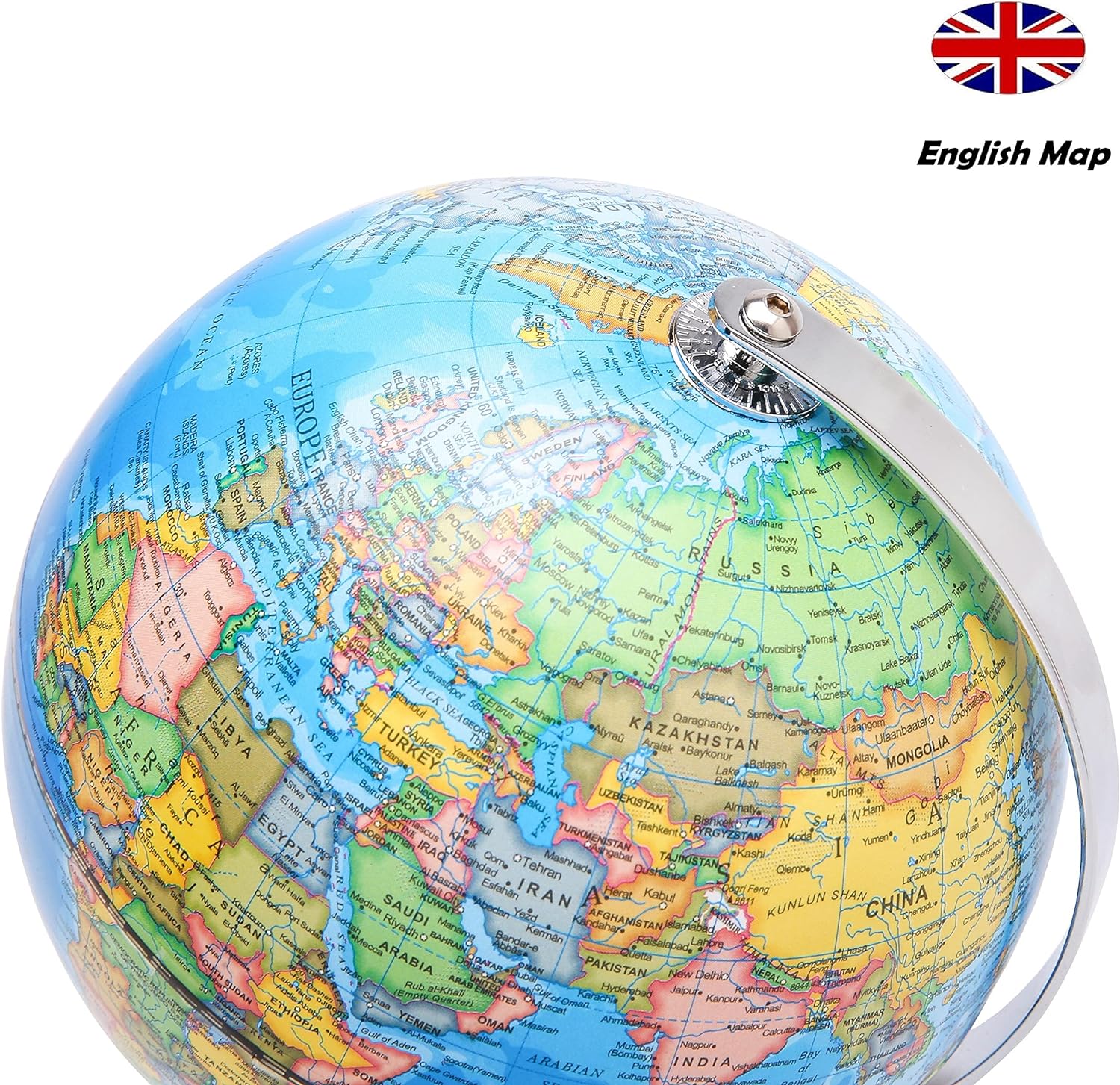 MORE THAN DECORATION: Exerz World Globe (Diameter 20 CM) has high quality printing which is fine and clear, led to a very easy and enjoyable experience when one to read the geographical sphere. It displays countries, political boundaries, capital cities, major cities, and more, feel free to use it every day and refer to it anytime. FUN & EDUCATIONAL: Our Globe has up to date detail, encourage inquisitive children to explore the world of science with their own hands and eyes. Children may be able to explore the continents they have or have not been, spot a place and find out what’s on it, and what’s around it, they would be encouraged to read and recognise the fact of the earth geographically and historically. EDGY METALLIC: Beautiful eye-catching globe , with a shiniest and rusty-free stainless steel arc and base, perfect for home and office decoration, as a stylish modern look, or simply match the colour of the spot you have chosen. HIGH QUALITY: The product itself rotates on a sturdy stand, height Including stand: 25.5 cm. We use the best material we are able to use in the industry, which include stainless steel, high quality ink, and so on. Aim to ensure this globe is a real luxury, with no disappointments. GIFTING: Packaging in premier craft box, perfect gifting idea for almost all the occasions. Children’s birthday, Christmas, friends’ event, new office opening, you are more than welcome to be creative. For instance, give to someone who would love to decorate a studio, or in a café as a stand out piece, etc.