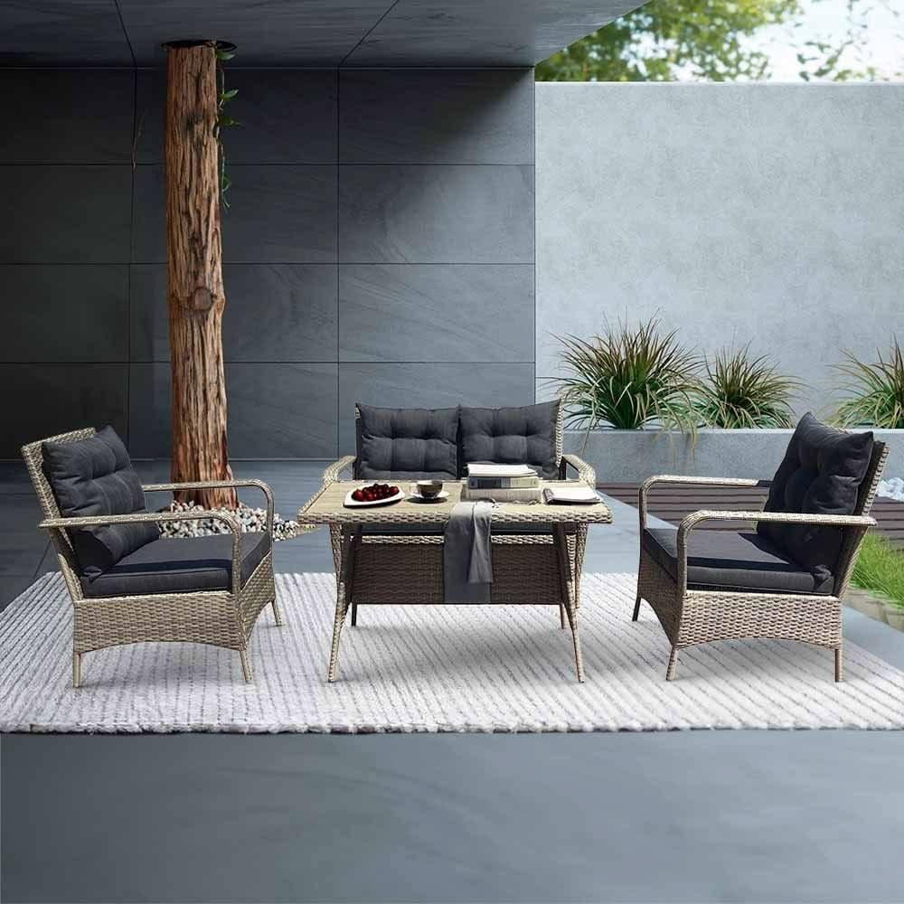 جهّز مساحة المعيشة الخارجية الخاصة بك للصيف مع مجموعة أريكة خارجية روزا المكونة من 4 مقاعد باللون الرمادي والقابلة للتركيب مجانًا. استمتع بإعداد خالٍ من المتاعب واسترخِ بأناقة مع مجموعة الأريكة الفسيحة والأنيقة هذه. مصنوعة من مواد مقاومة للعوامل الجوية، هذه المجموعة مثالية لأي فناء خلفي أو فناء.