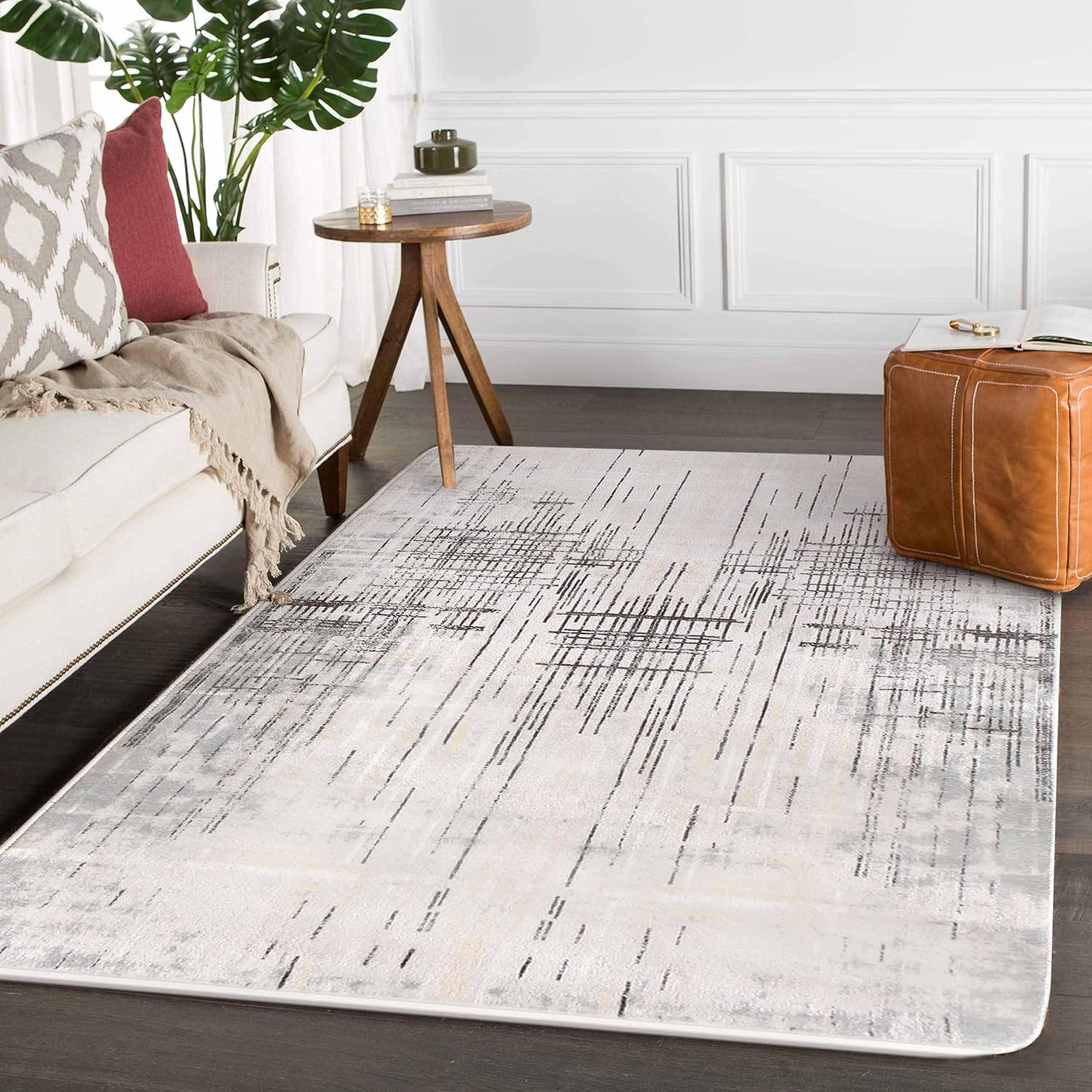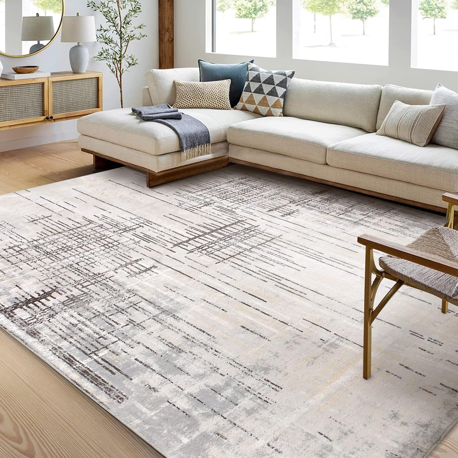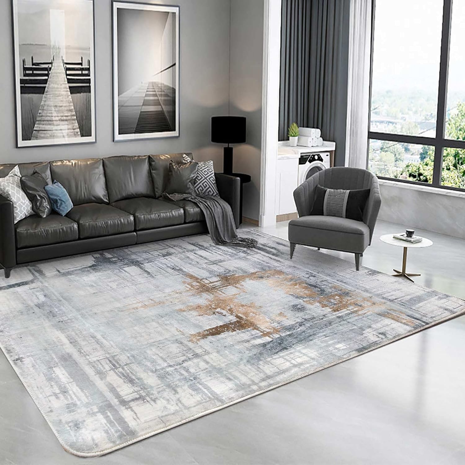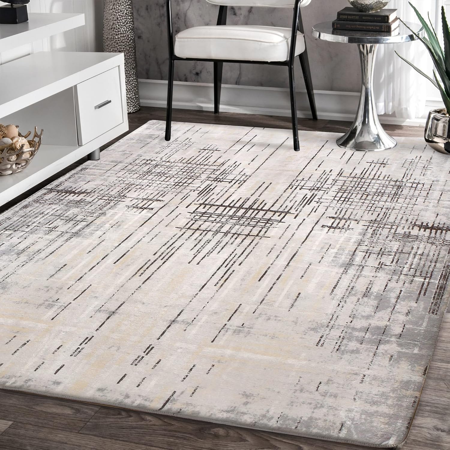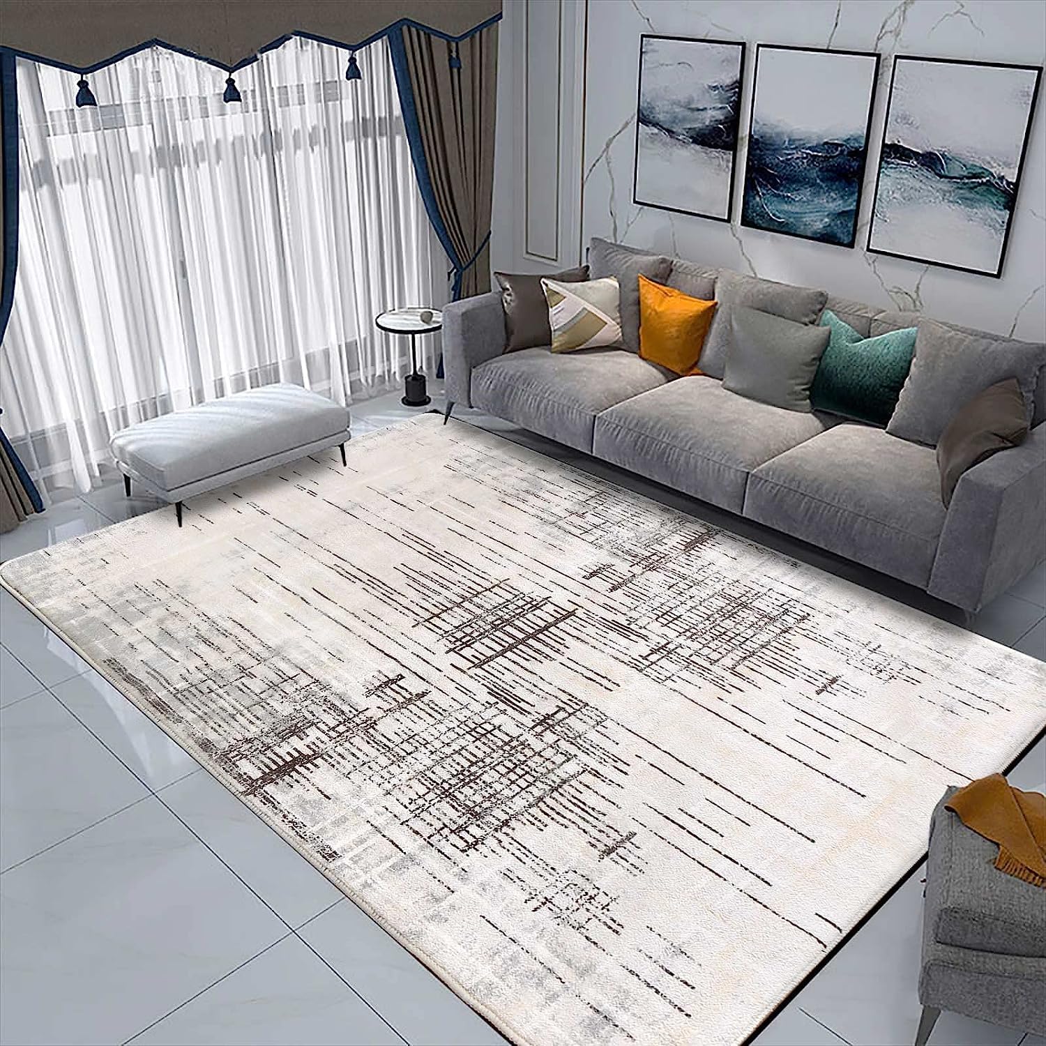Leesentec Carpets & Rugs Modern Abstract Area Rugs Living Room Soft Short Pile Rug Non-slip Grey Large Luxury Carpet Living Room Bedroom Floor Mat Home Decor (120 * 160 cm, Beige Grey)