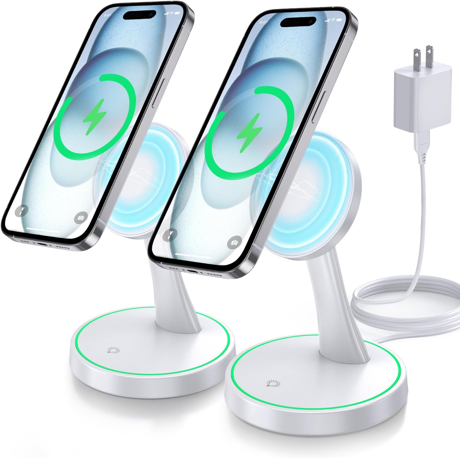 Magnetic Wireless Charger Stand 15W Fast Mag-Safe Charger for iPhone 16/16 Pro/16 Plus/16 Pro Max/15/14/13/12 Series Magnet Wireless Charging Station/Pad with Sleep-Friendly Light for AirPods