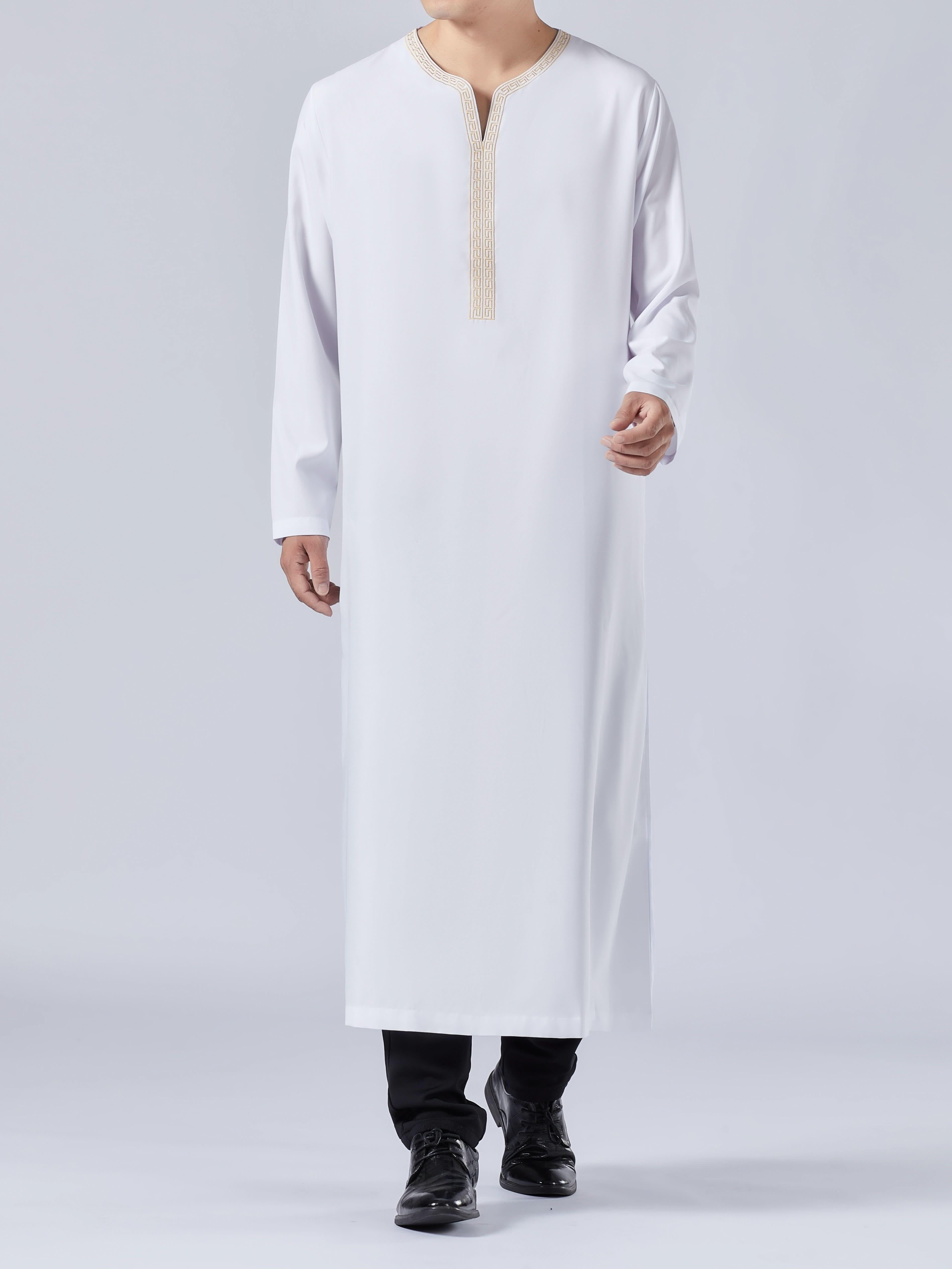 قفطان عربي رجالي، رداء إسلامي، ملابس حج للرجال، ملابس إسلامية، ملابس رمضانية عربية سعودية بأكمام طويلة