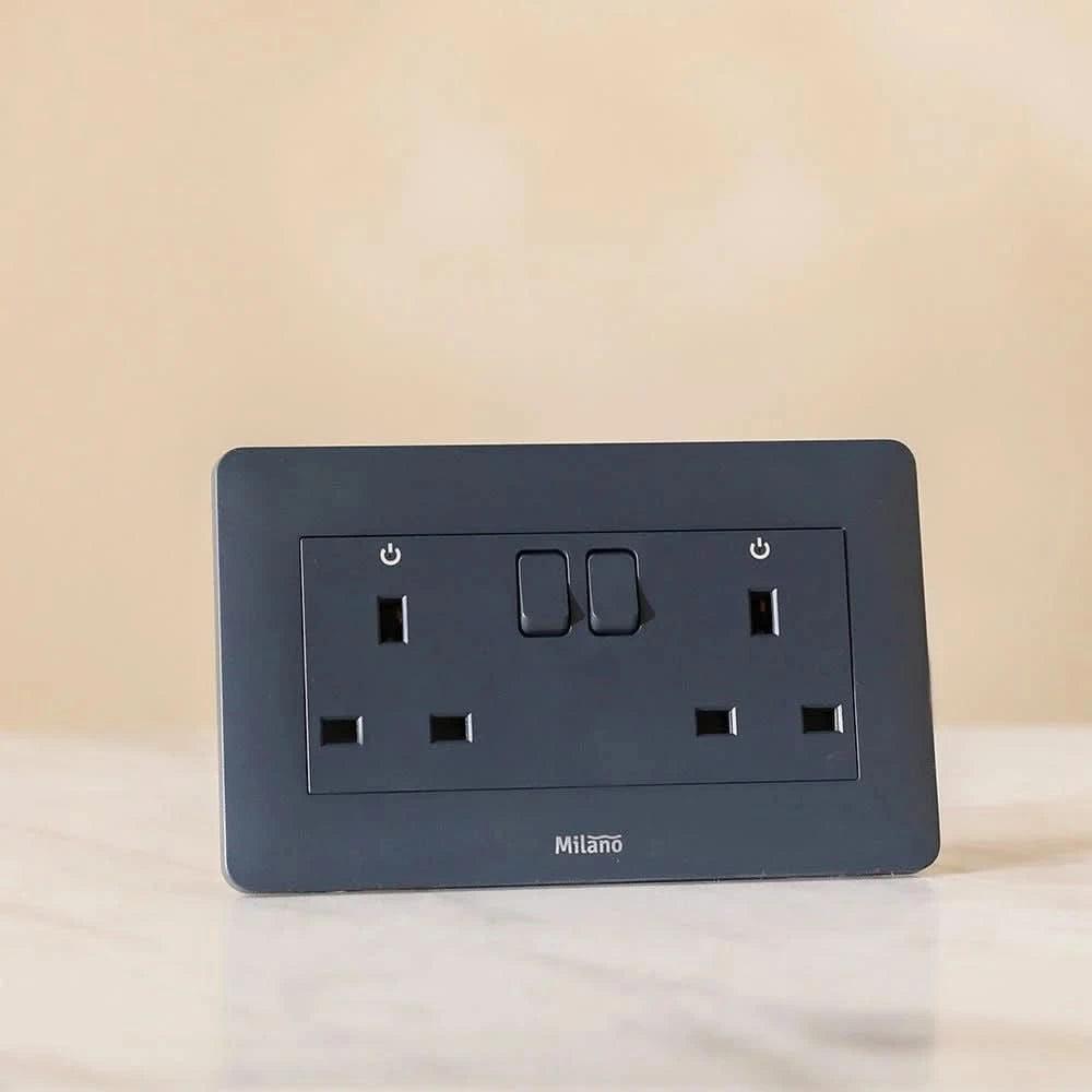 يوفر مقبس ميلانو 13A ثنائي المفاتيح مصدر طاقة موثوقًا وفعالًا لأجهزتك. بفضل المفاتيح المزدوجة، يتيح هذا المقبس التحكم بسهولة في أجهزة متعددة. يضيف تصميمه الأسود الأنيق لمسة عصرية إلى أي غرفة.