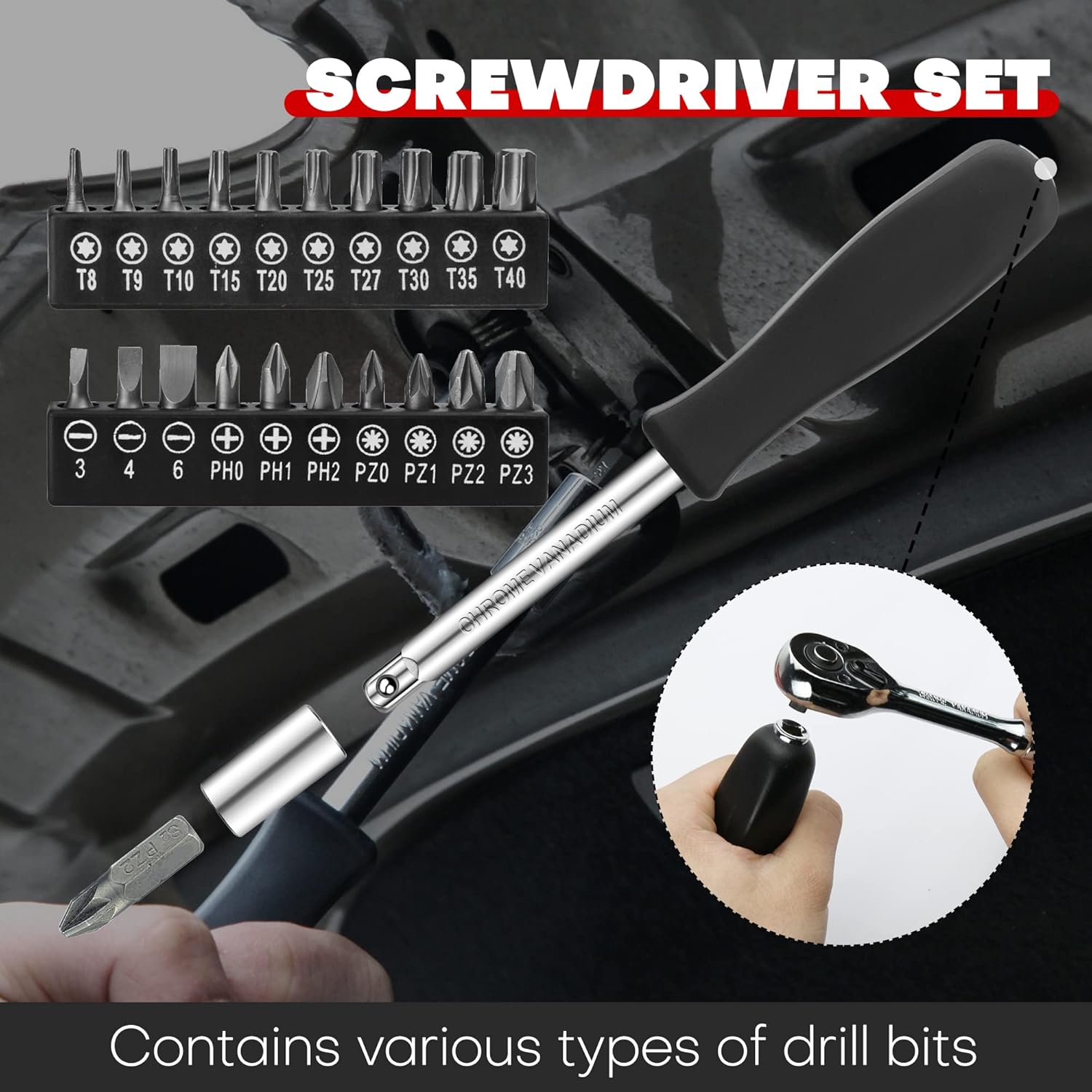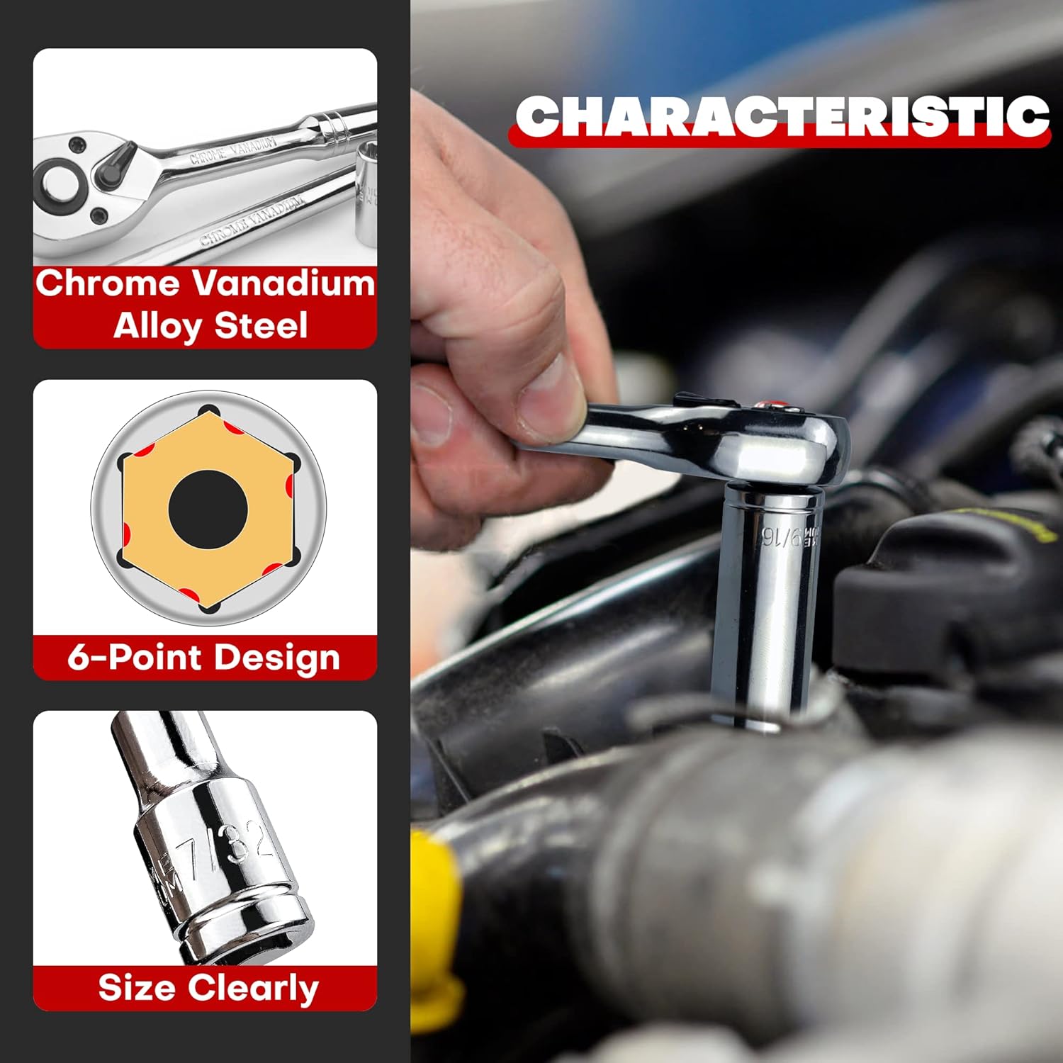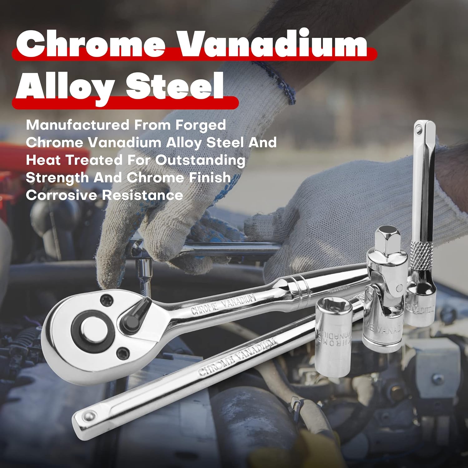 Yiyitools 74 Pcs 1/4" Drive Socket Set Is Made Of High-Quality Chrome Vanadium Steel To Extend The Service Life. The Mirror Chrome Coating Can Resist Corrosion And Rust.