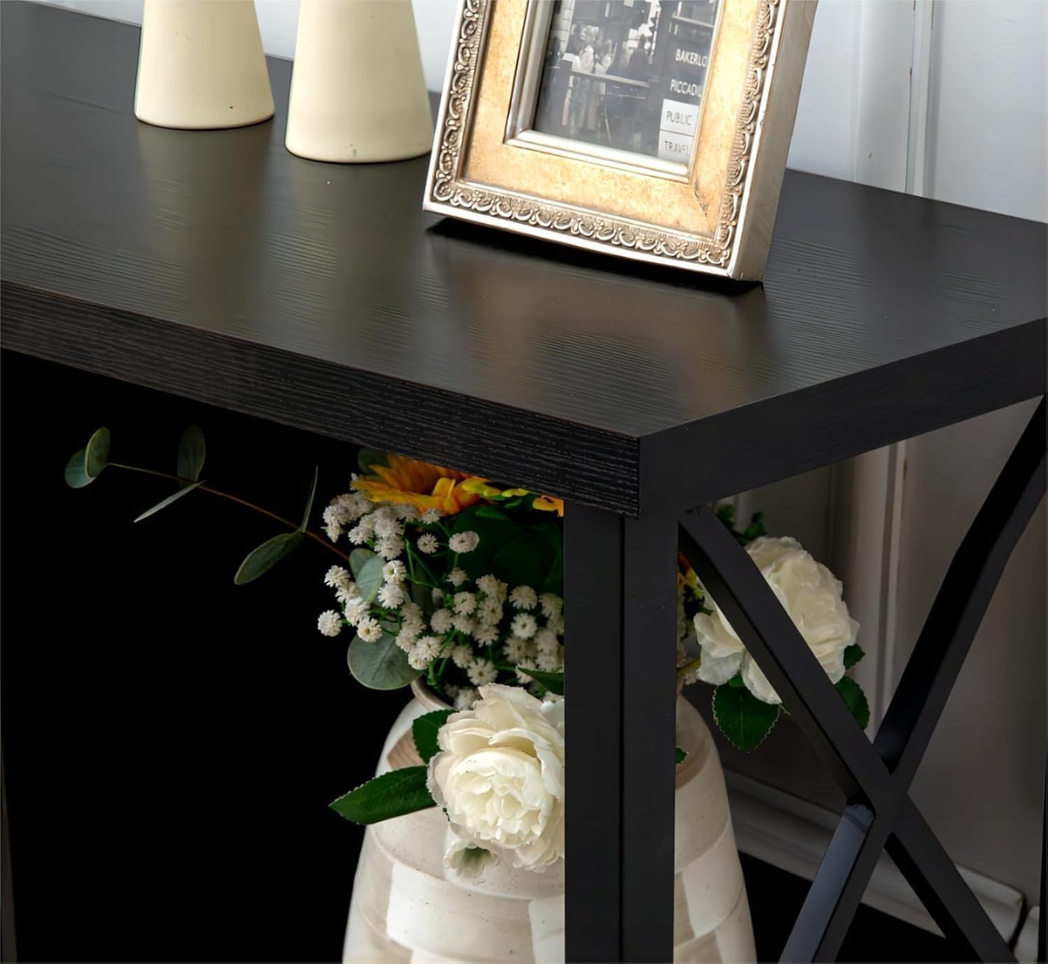 Constructed of heavy-duty metal X-shaped frame and thick tabletop, this television stand boasts robust stability and strength.