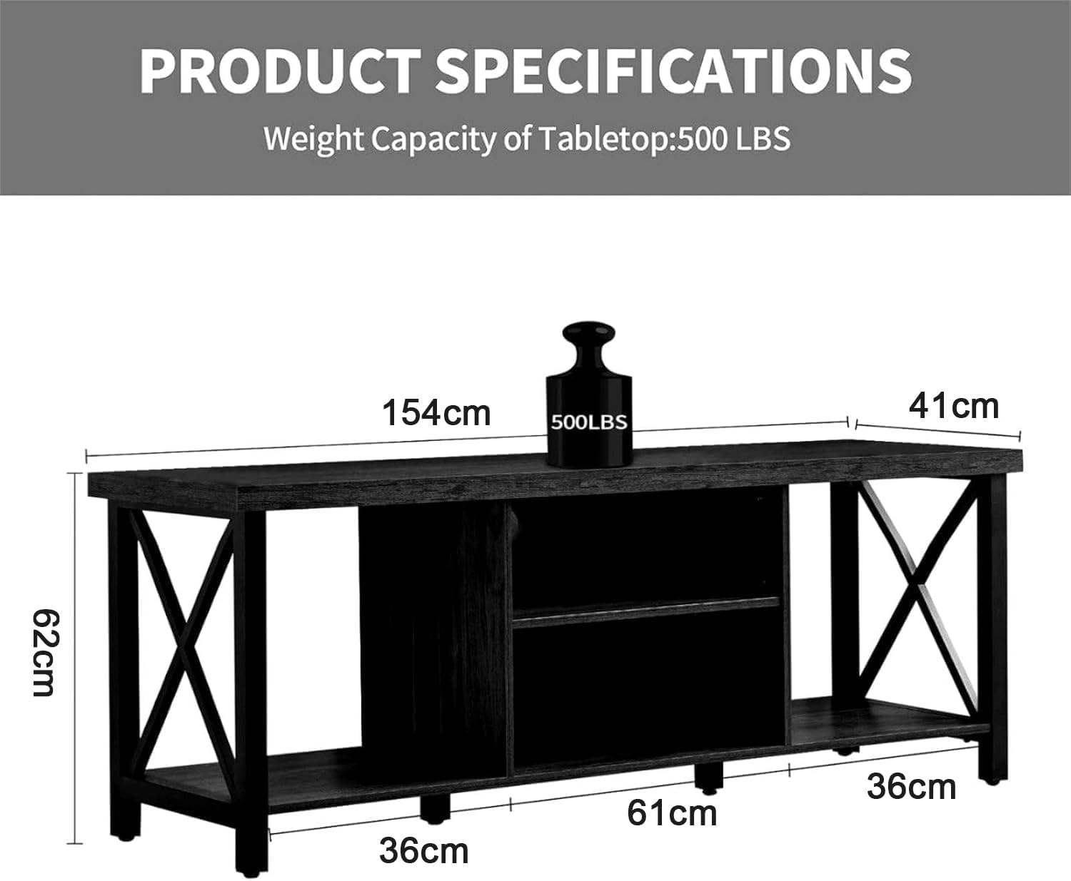 154 * 41 * 62cm TV Stand for TV up to 55 Inches, TV Cabinet with Open Storage, TV Console Unit with Shelving for Living Room, black