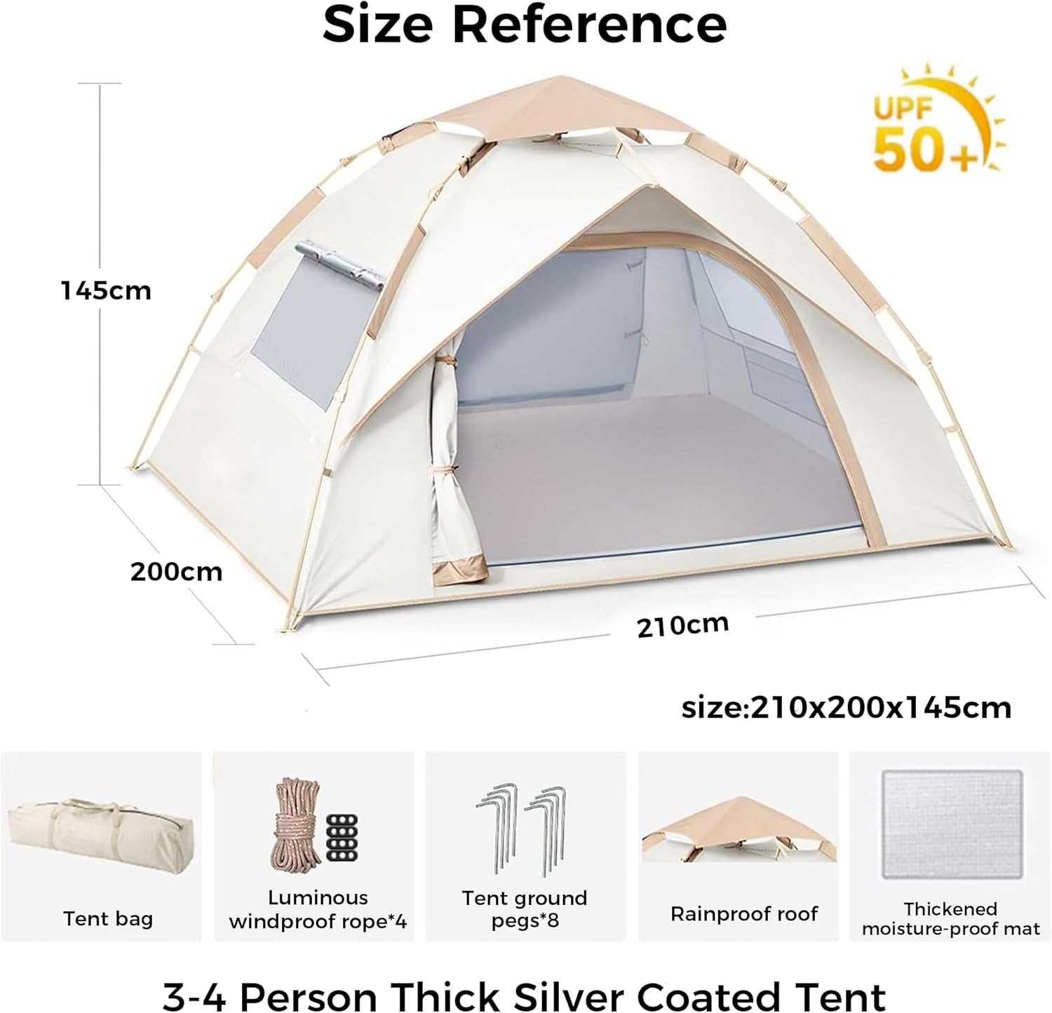 【Spacious Dome Design for 3-4 People】 Enjoy ample room with our family-sized dome tent. Measuring 210*200*145cm, it offers comfortable sleeping and living space for 3-4 campers. The intelligent dome structure enhances stability and wind resistance, ensuring a secure and enjoyable overnight camping experience.