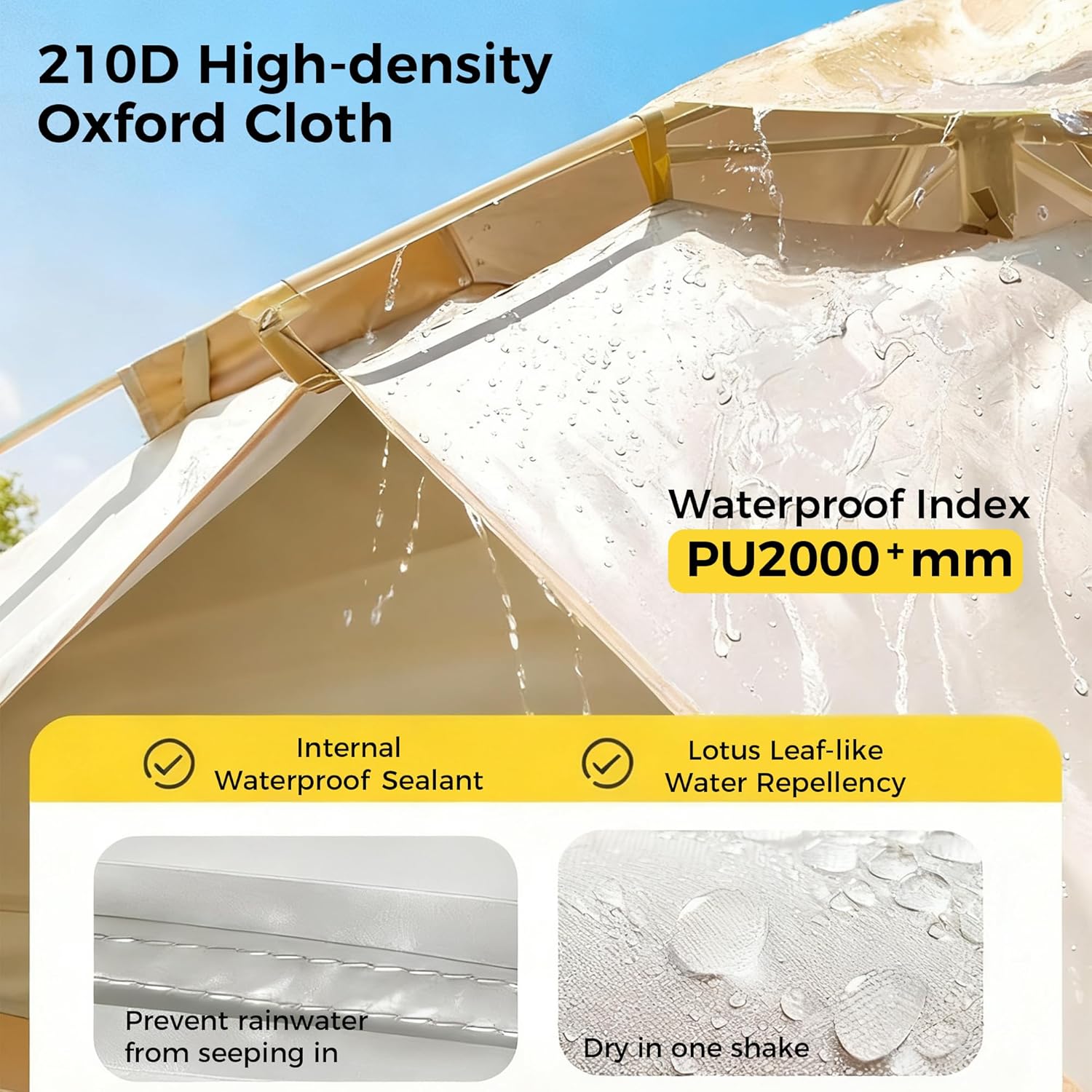 【Reliable Waterproof & Sun Protection】 Don't let unpredictable weather ruin your trip. Crafted from thickened, high-grade waterproof fabric, this outdoor tent offers excellent rain protection. It also provides effective UV resistance, creating a cool, shaded refuge for comfortable camping and relaxing at the beach.