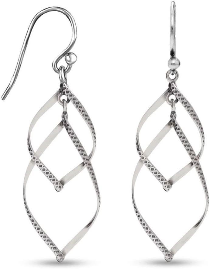 925 Sterling Silver Double Twisted Linear Marquise Loops Classic Infinity Drop Dangle Earrings AL064 - Nimall