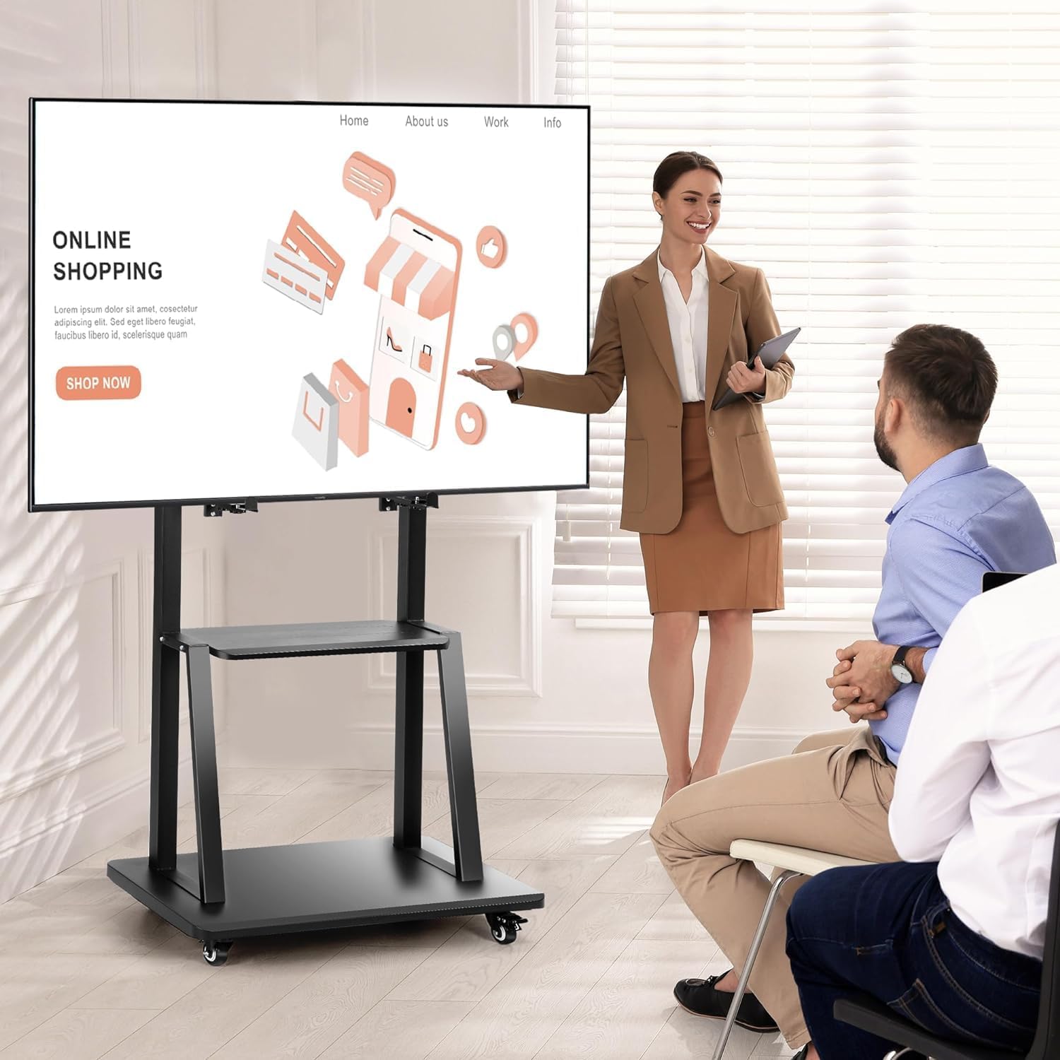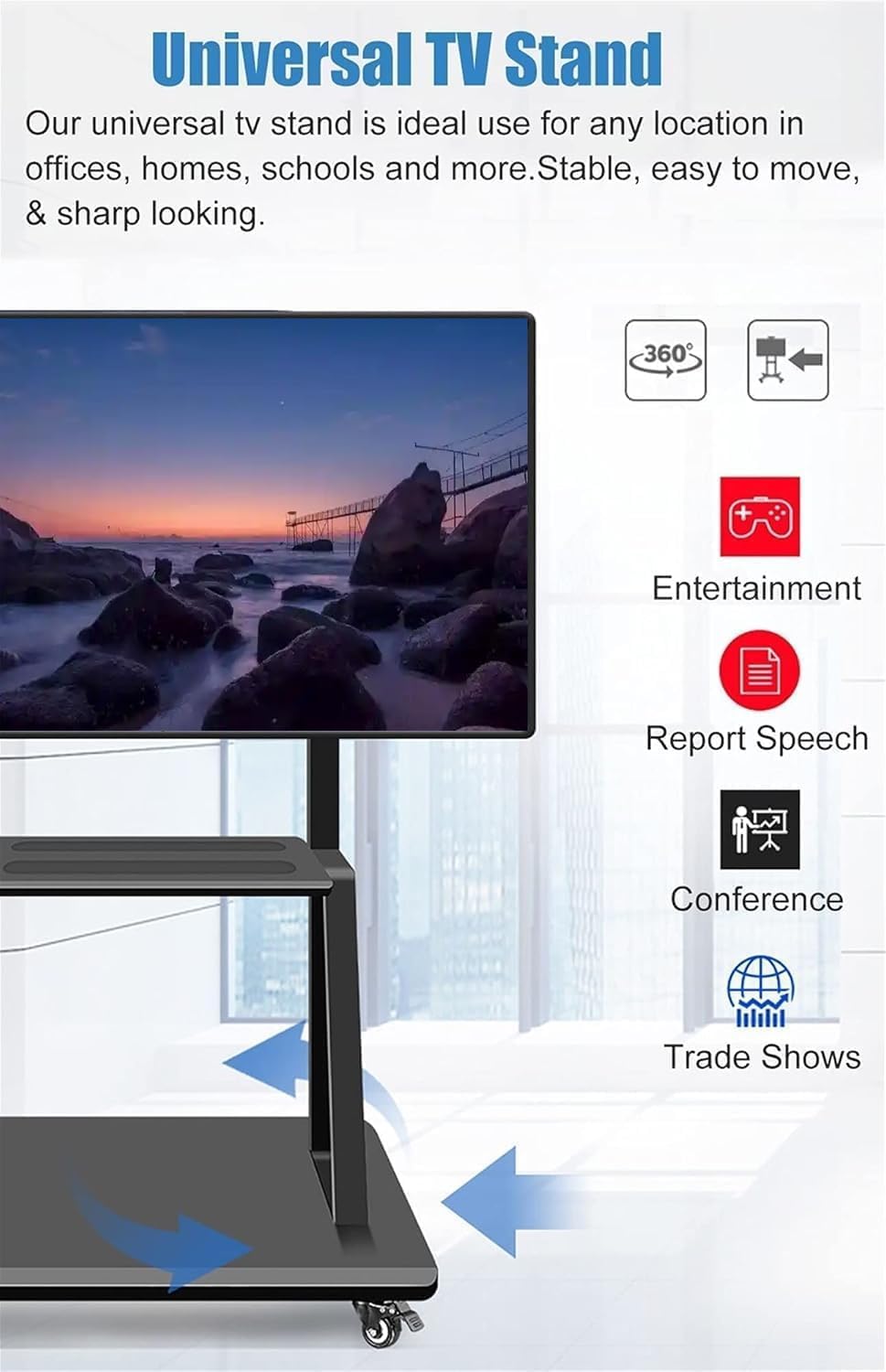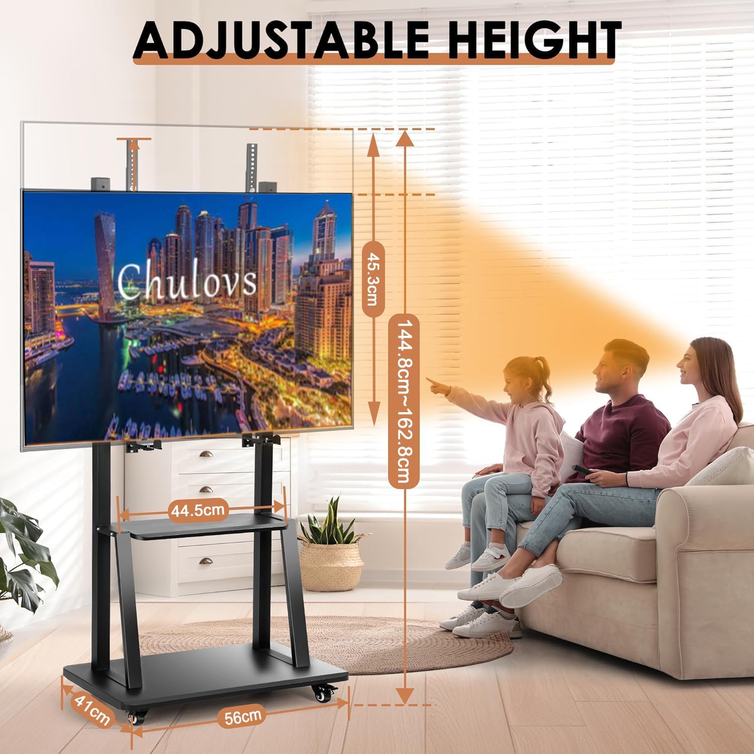 Chulovs NEW Mobile TV Cart with Wheels for 32-70 Inch TV, Heavy Duty Adjustable Height Rolling TV Stand, School/House/Apartment Floor TV Display Stand Beautiful Scenery (Black)
