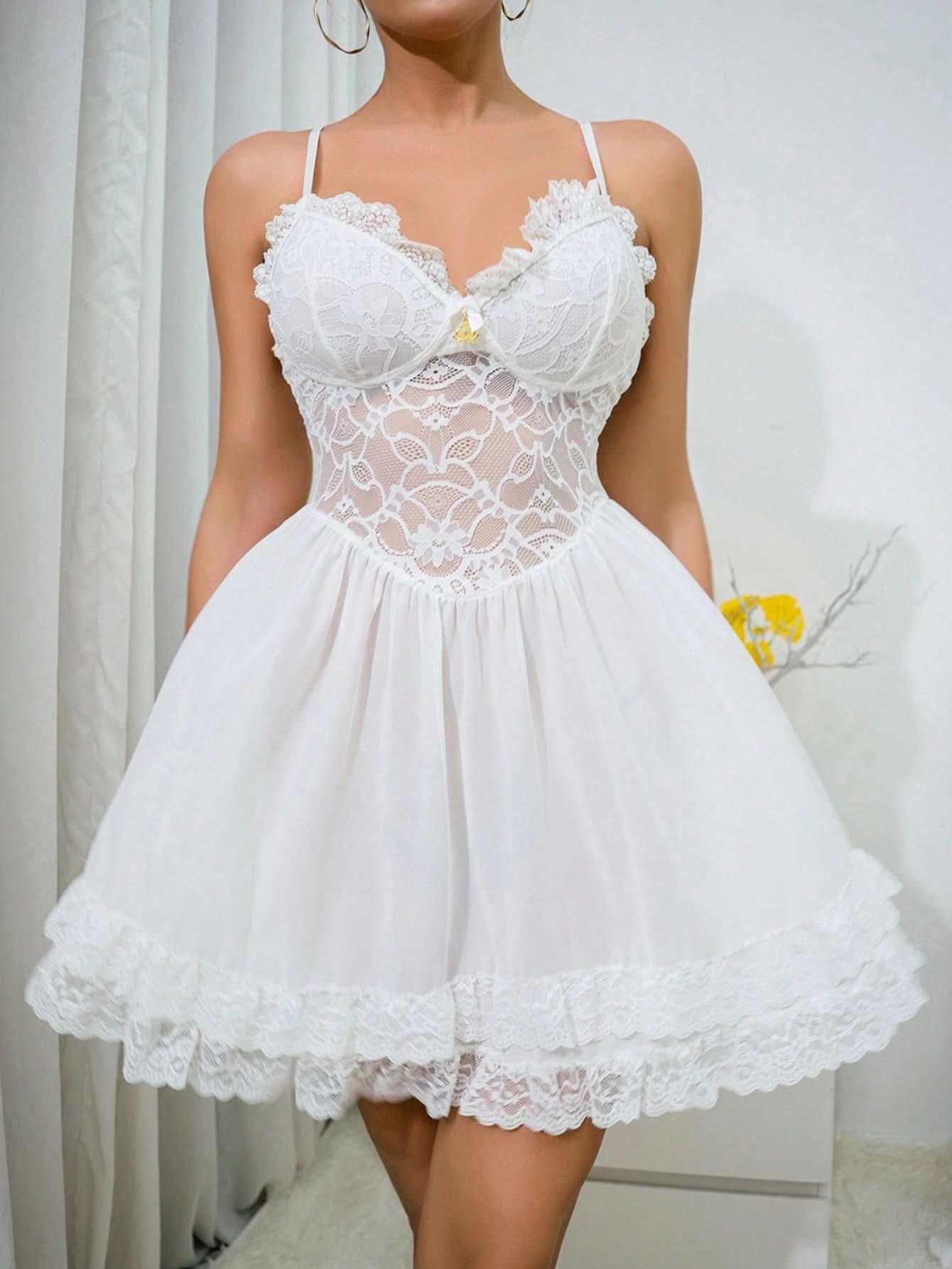 Contrast Lace Pattern Strappy Nightdress Womens Lingerie