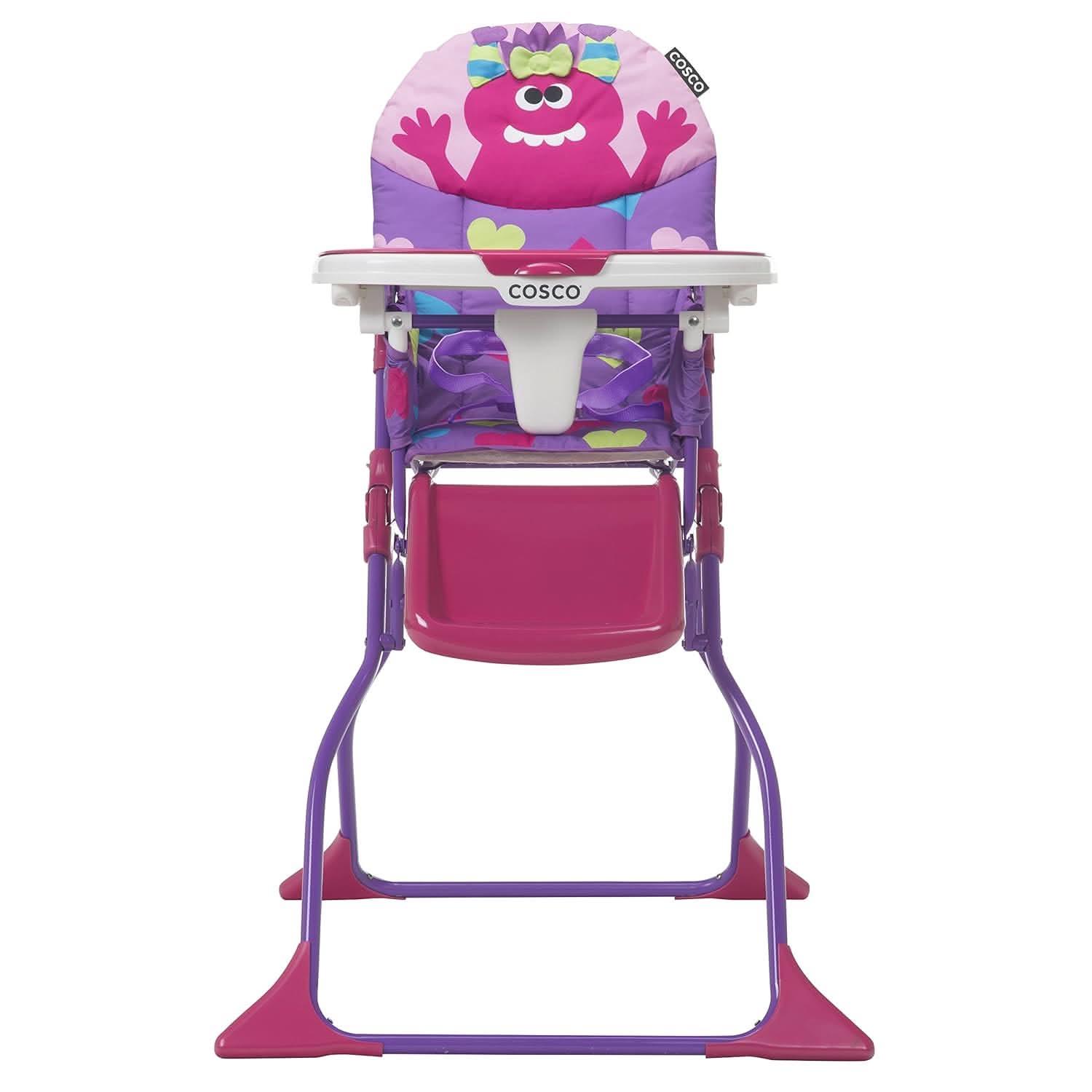 Invite a monster to mealtimes with a Cosco Kids™ Simple Fold Deluxe High Chair. The fun monster design will delight your little one, but the easy-to-clean design and slim fold will delight you. The wipeable seat pad makes it easy to wipe up after messy meals and the 3-position adjustable tray features a dishwasher safe insert. True to its name, the Simple Fold High Chair folds down quickly with no need to remove the tray which makes it simple to hide away or to take with you while on the go.