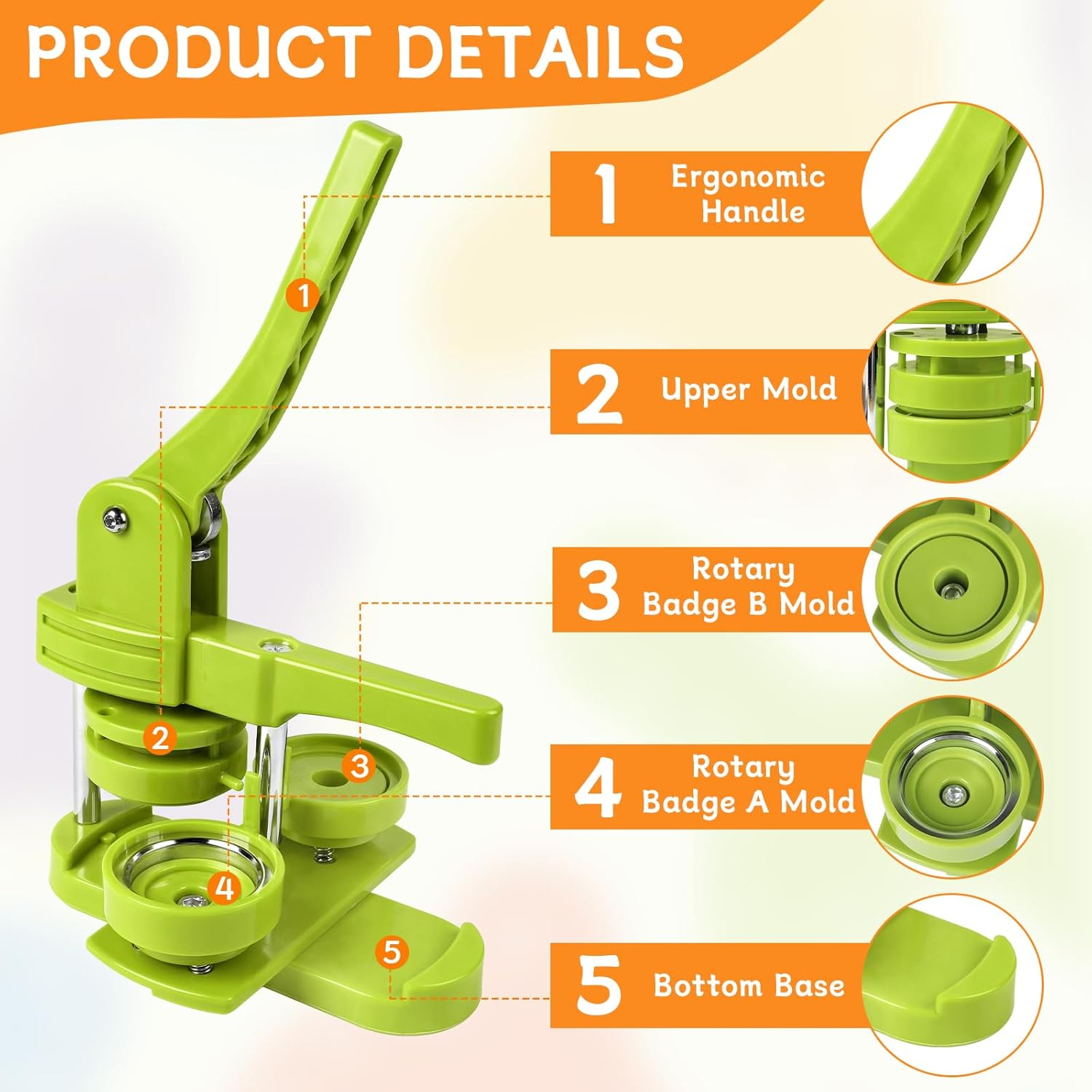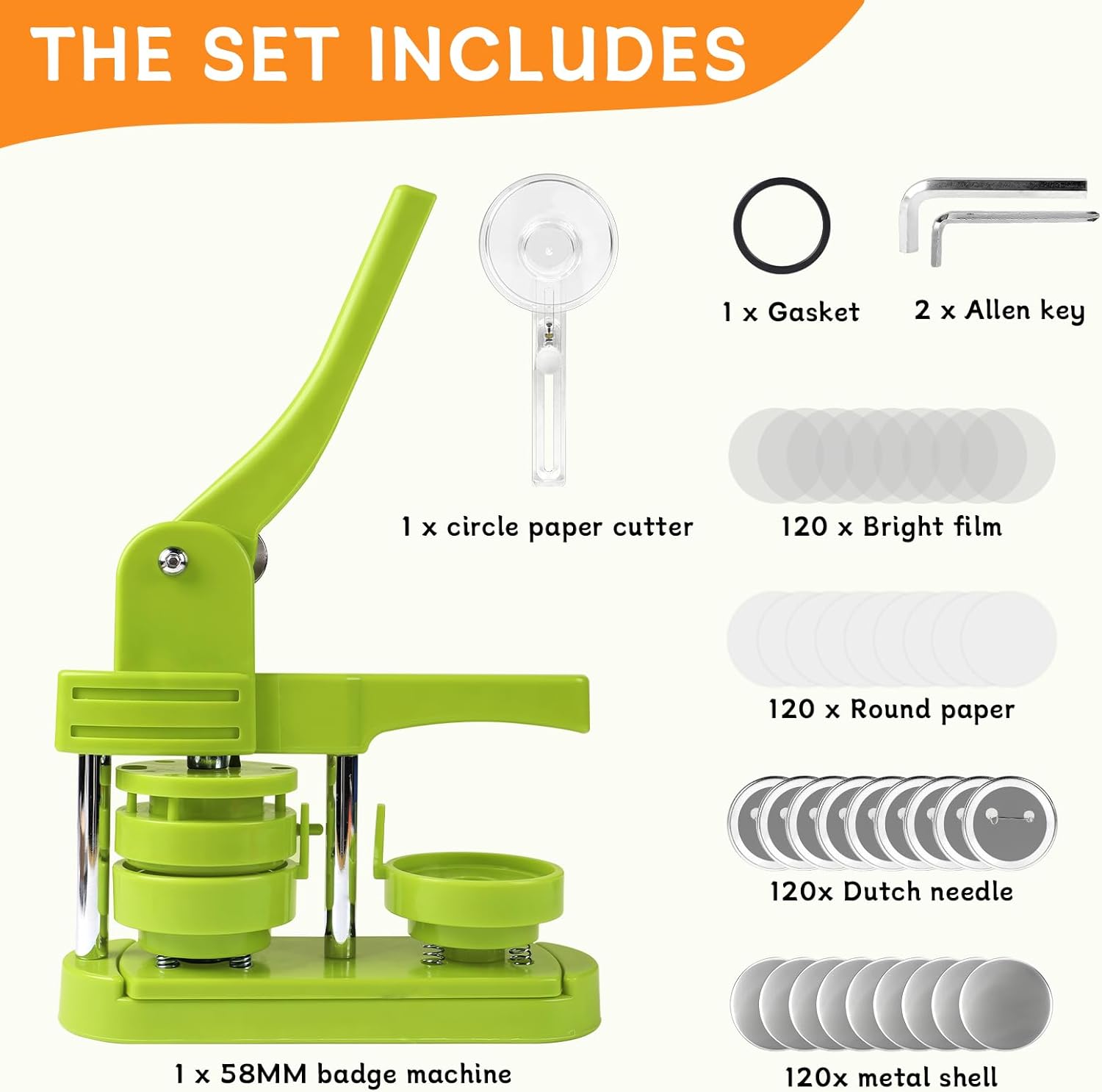Whether beginners or professionals, our 58 mm button machine is the ideal tool for your creative projects. Let your imagination run wild and design with joy and ease - an investment in unforgettable moments and lasting memories.