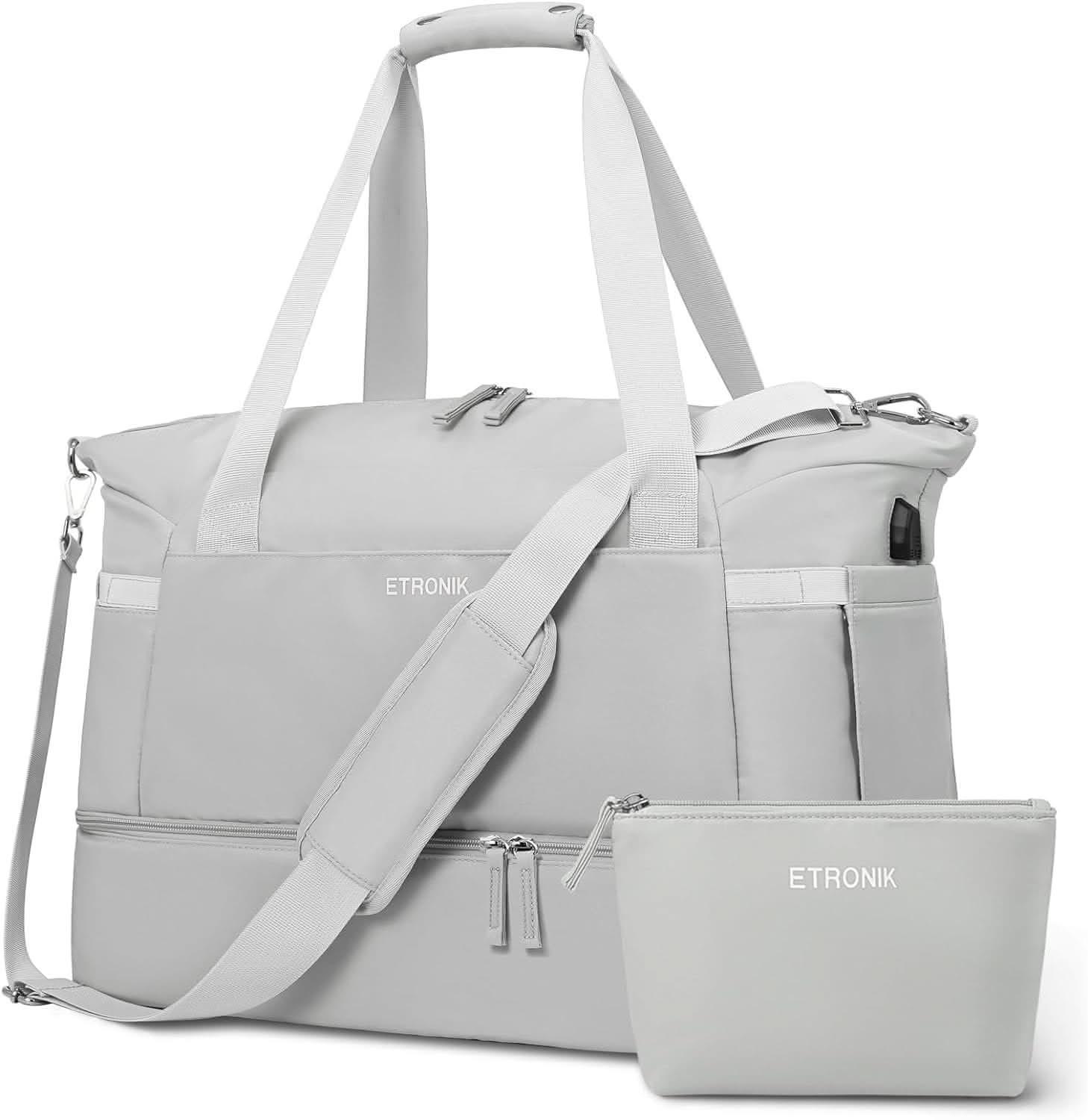 【Dry Wet Separate Duffel Bag】:This duffle bag for women delivers roomy main compartment to store your clothes and items. A zippered waterproof PVC lined pocket for wet clothes or towels and swimsuits. In addition, this travel duffel bag also gives an extra small makeup bag for easy storage.