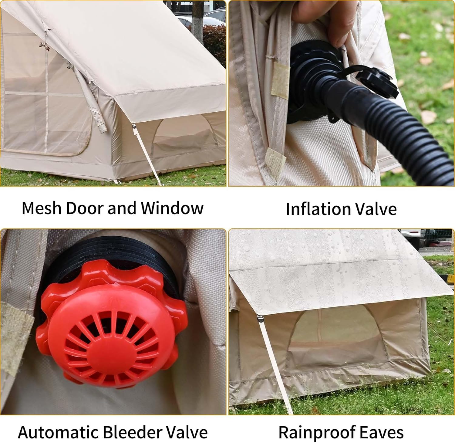 Inflatable 4 Person Waterproof House Family Tent Easy to Set Up Glamping Tent with Storage Bag and Air Pump Camping Tent for Outdoor, Camping, Hiking,
