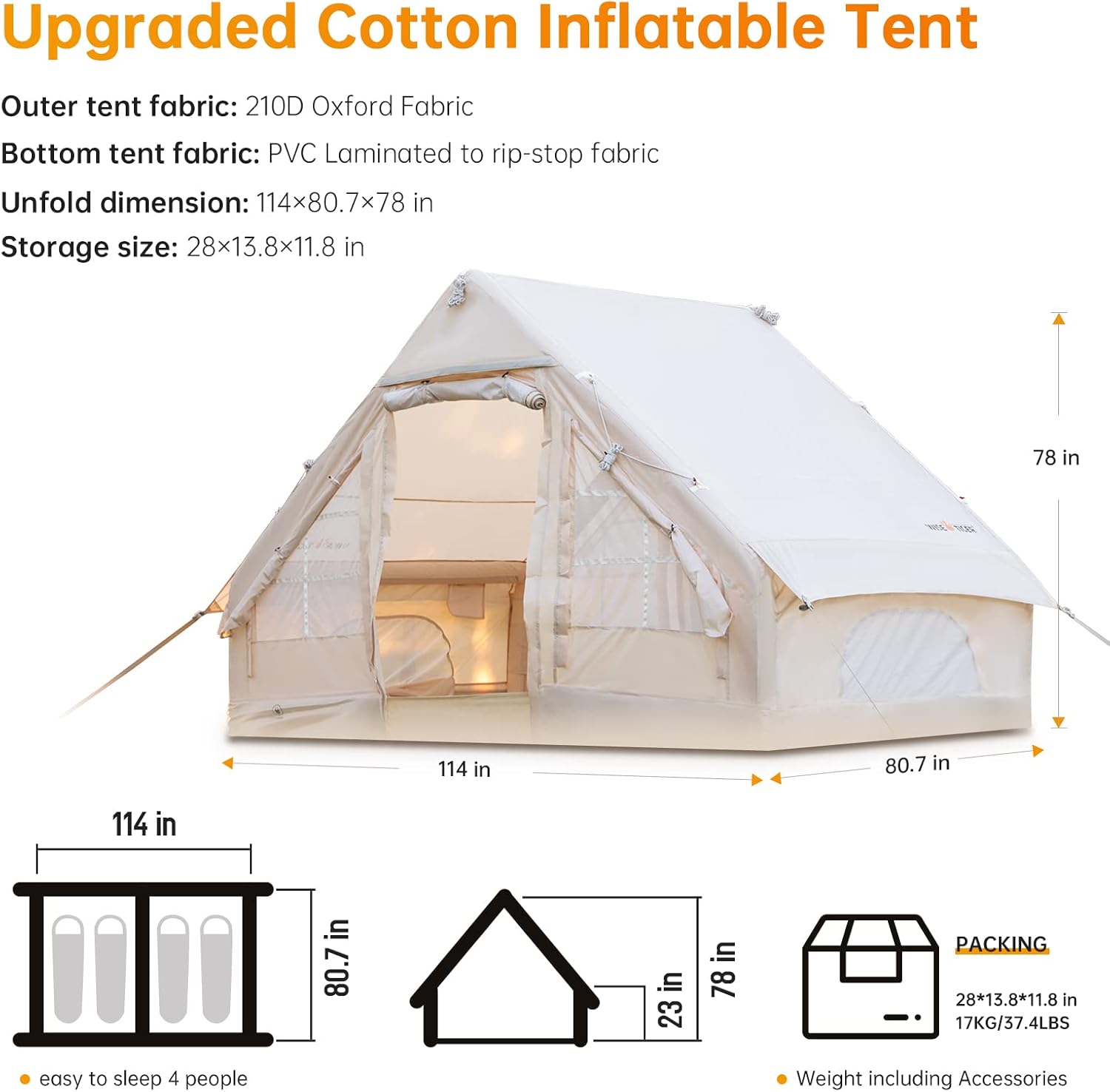 【Waterproof and Windproof】- Oxford Canvas Tent, can reasonably balance water repellency and breathability, comfortable and not stuffy. But it is not recommended to use it in the rain for a long time. Double seam seal and sturdy zipper add extra reliability to the camping tent. Withstands 3000mm water pressure.