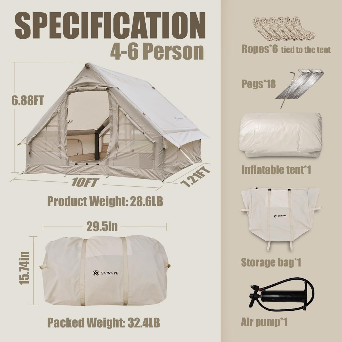 The inflatable tent for adults has double zippers that allow convenient entry and exit from different directions. Wind protection tent: its air pipes can never break, so the tent works well when you use it in windy places. Even if it bends due to wind pressure, it will bounce back immediately when the pressure drops. This tent is warm in winter and ventilated in summer, suitable for use all year round. The inflatable tent provides enough standing and running surfaces for travel and small outdoor parties. It is an ideal tent for camping, small travel and beach activities.