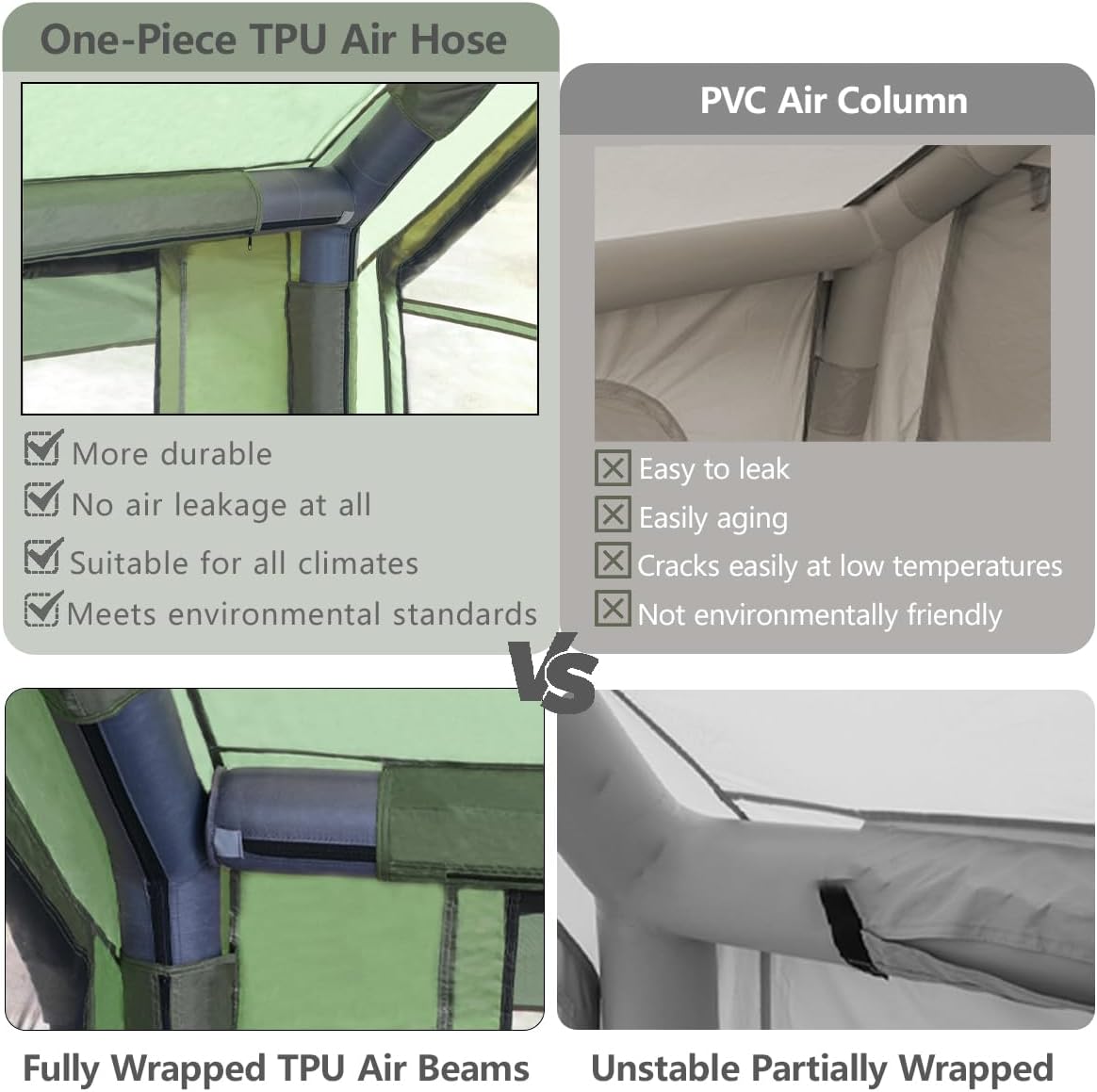 Inflatable Tent for Camping with Hand Pump Blow Up Tent Glamping Tent 4 Season Air Tents, Easy Setup Waterproof Outdoor Oxford Tents, 4-8 Person House Breathable Large Luxury Tent, Field Green