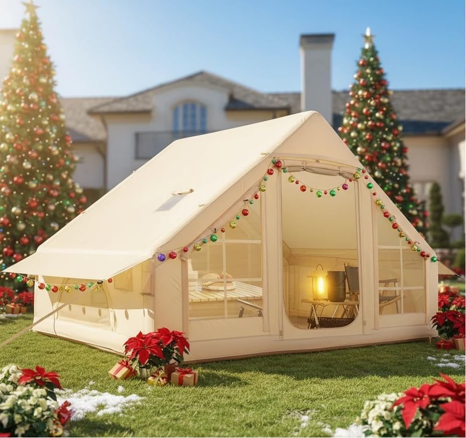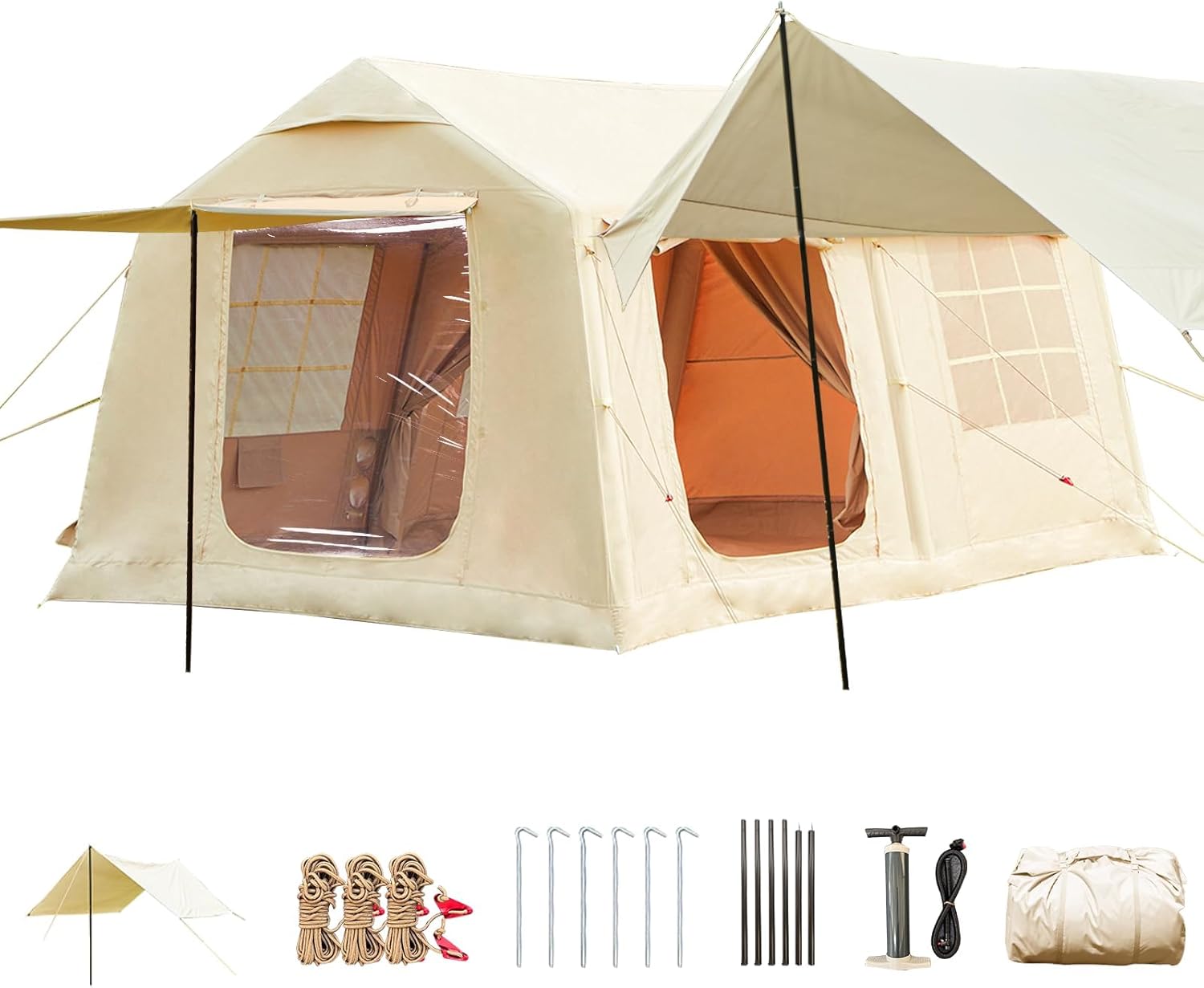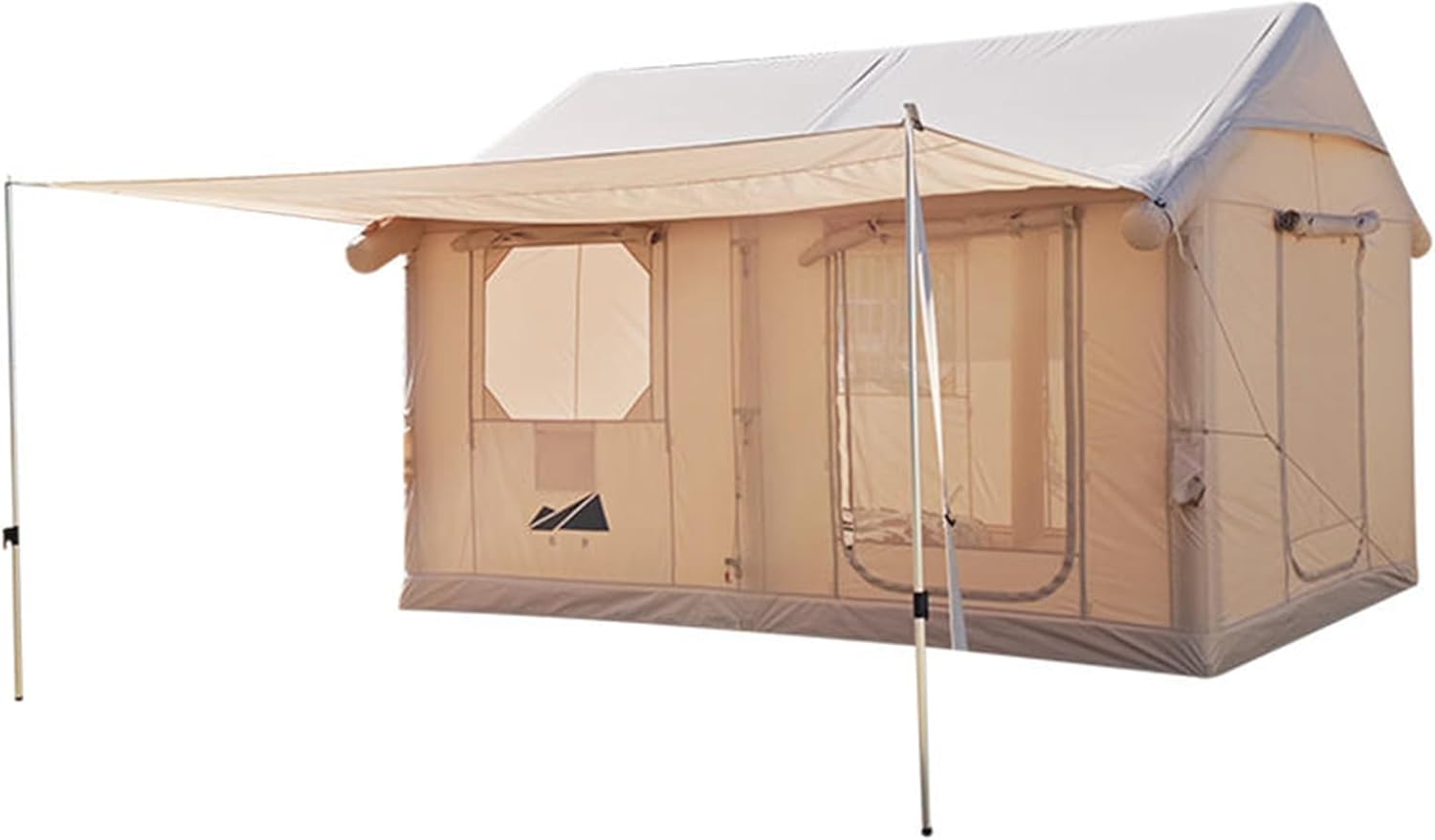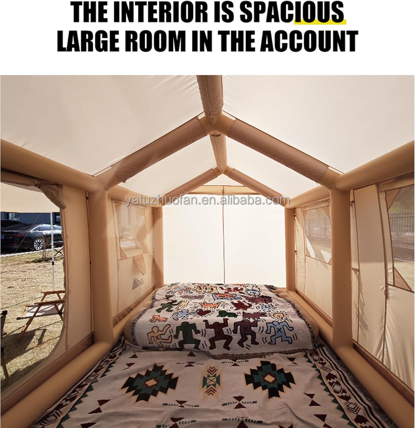 【Ultimate Ventilation & Mosquito-Free Comfort】 Enjoy the breeze without the bugs! Our 4-season Inflatable Camping Tents are designed with large mesh windows and two D-shaped zippered arches to maximize airflow mobility. This strategic ventilation system keeps the interior cool and fresh while effectively preventing insects, ensuring a comfortable sleep during your luxury Glamping Tents outings.