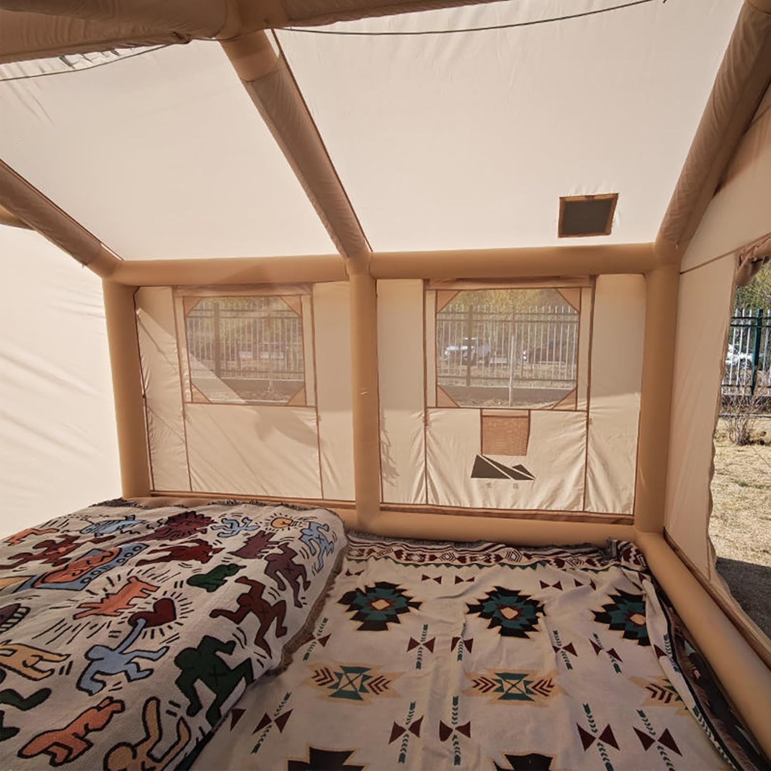 【All-Weather Protection】 Crafted from high-density Oxford fabric, this is a truly waterproof and windproof Inflatable Tent. With an impressive 2000mm water resistance, integrated rain covers, and strong UV protection, this Tents offers a reliable, dry, and shaded refuge for your Glamping Tents experience, capable of handling unexpected desert winds and sun exposure.