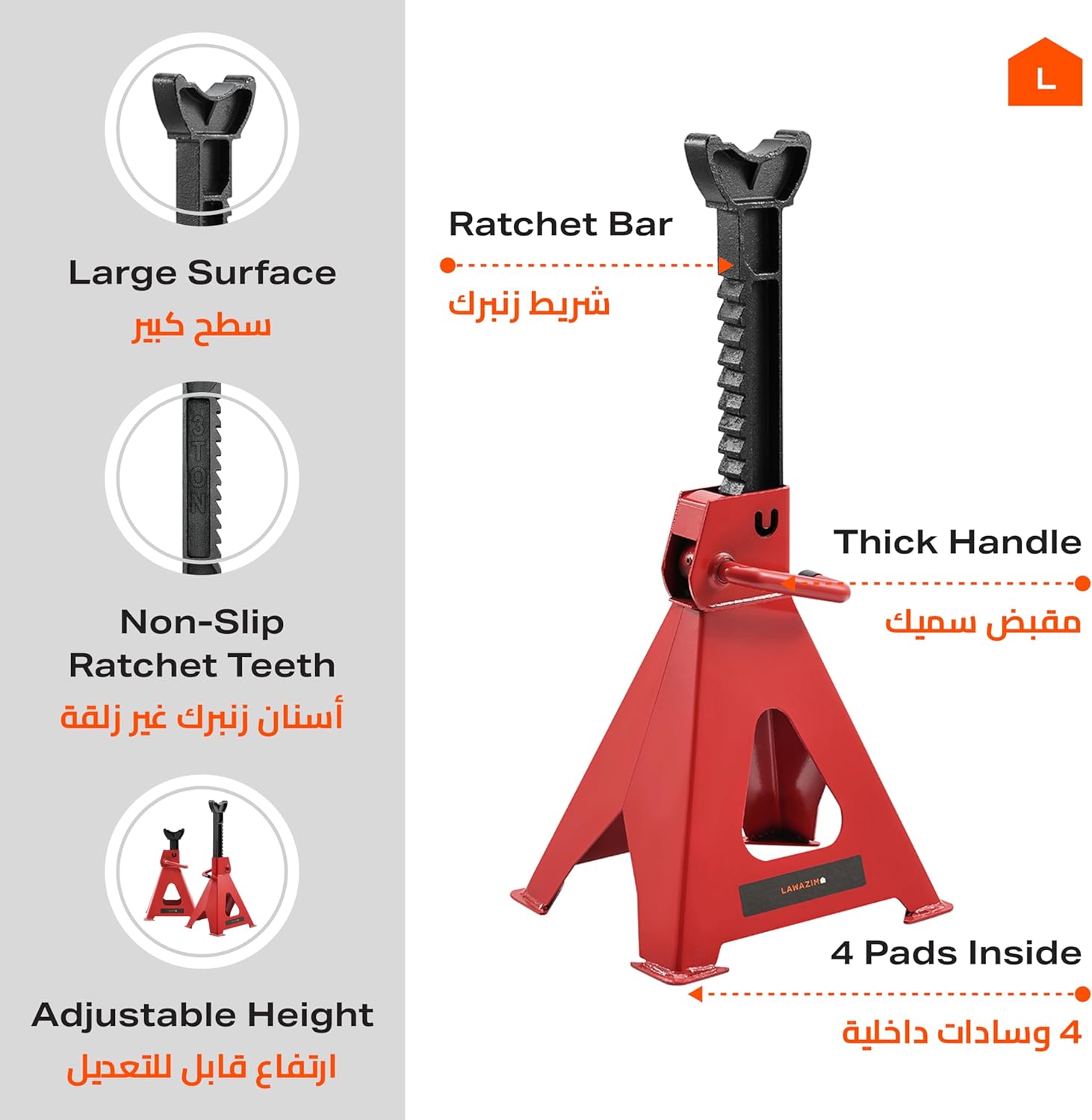 Designed for vehicle maintenance, car repairs, and heavy equipment support, this 2-piece jack stand set is built to handle up to 3 tons of load, it offers superior durability, stability, and load-bearing capacity for any automotive task. The adjustable height feature allows for precise lifting, while the ratchet mechanism ensures secure positioning under your vehicle.