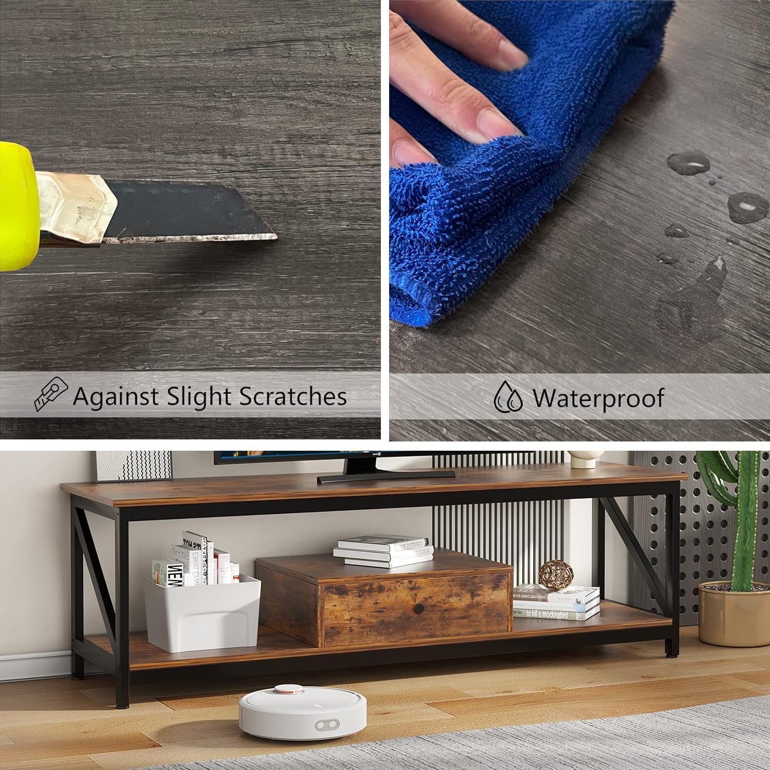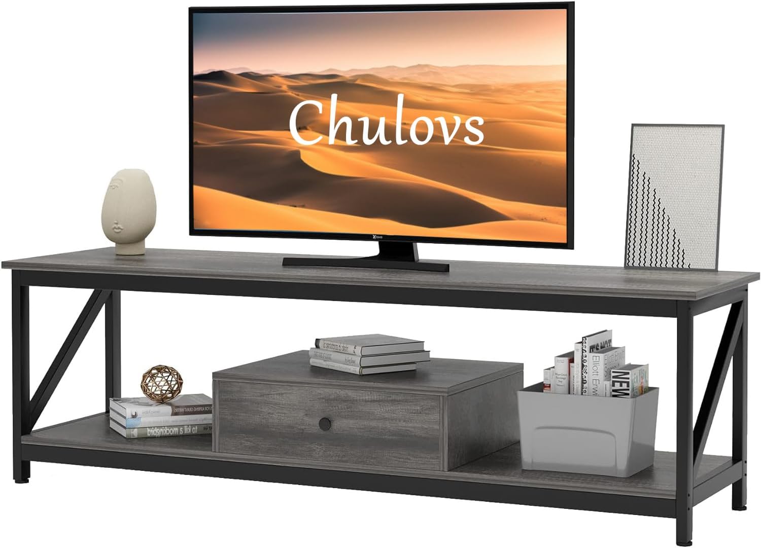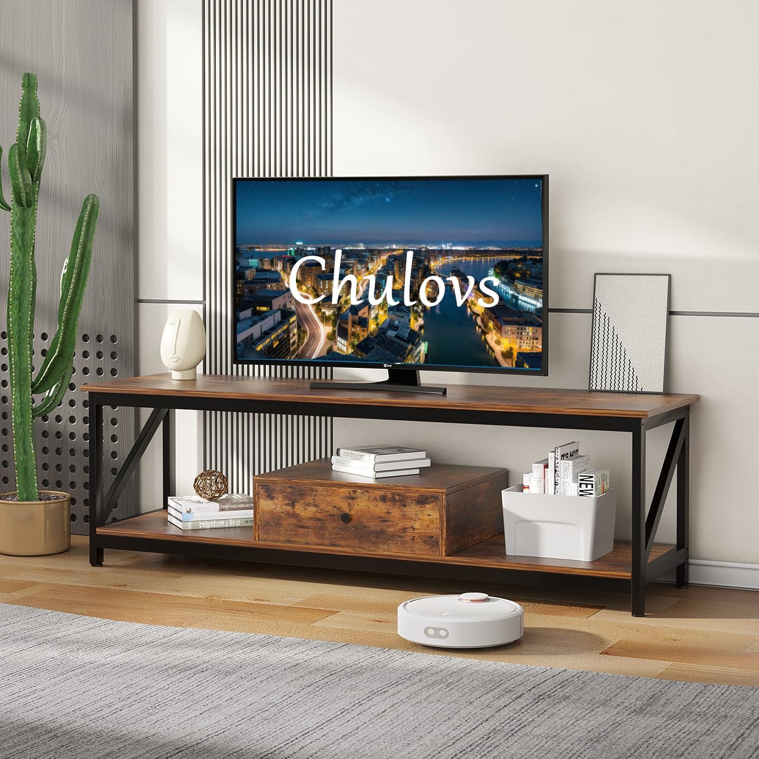 Modern TV Stand for 60 inch TV with Storage Shelves, with a Drawer Wide TV Entertainment Center, Wooden TV Table with Metal Frame Sutible for Living Room (Brown)