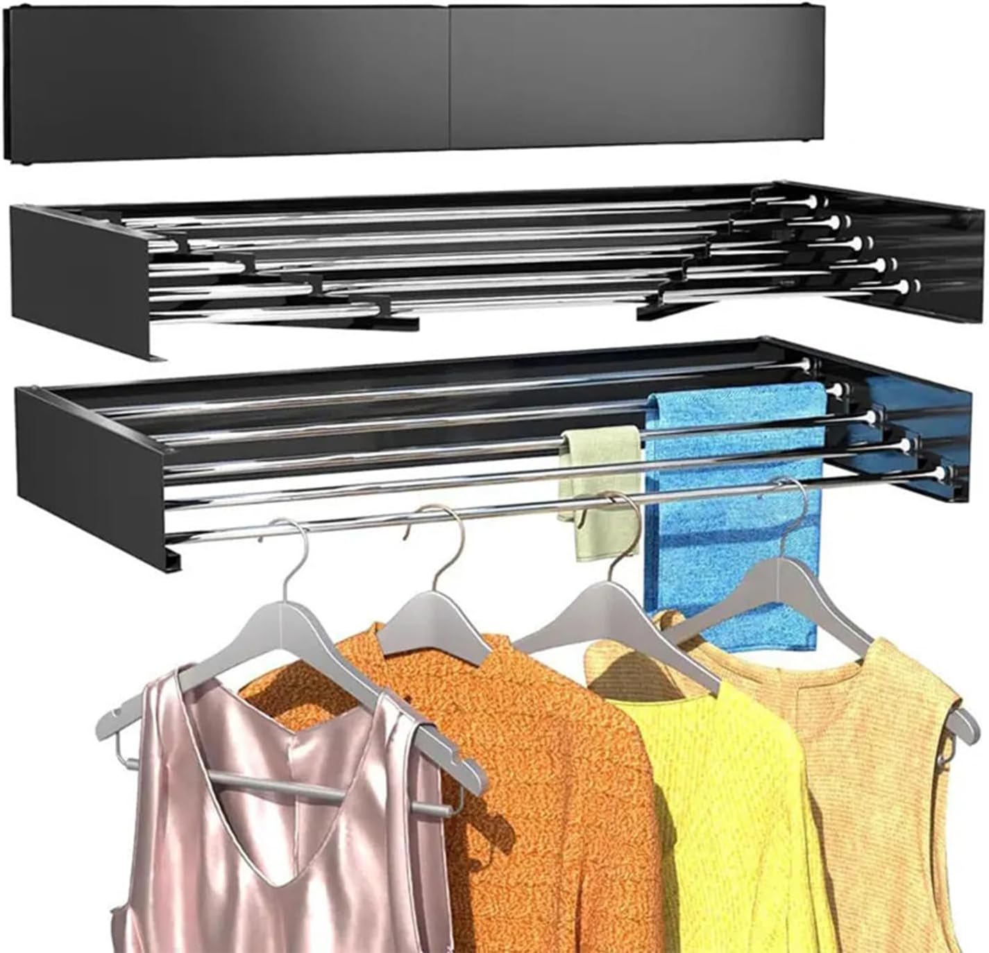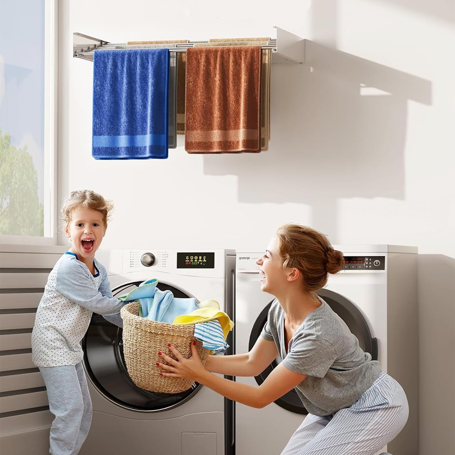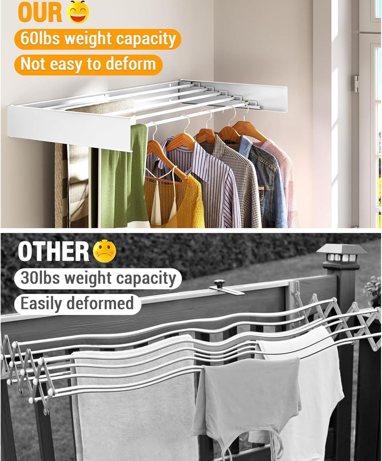 Mylindde Wall Mounted Drying Rack, Foldable Wall Mount Laundry, Retractable Drying Rack, Clothes Drying Rack for Indoor & Outdoor Organization, 100% Aluminum Rods, 5 Rods (White)