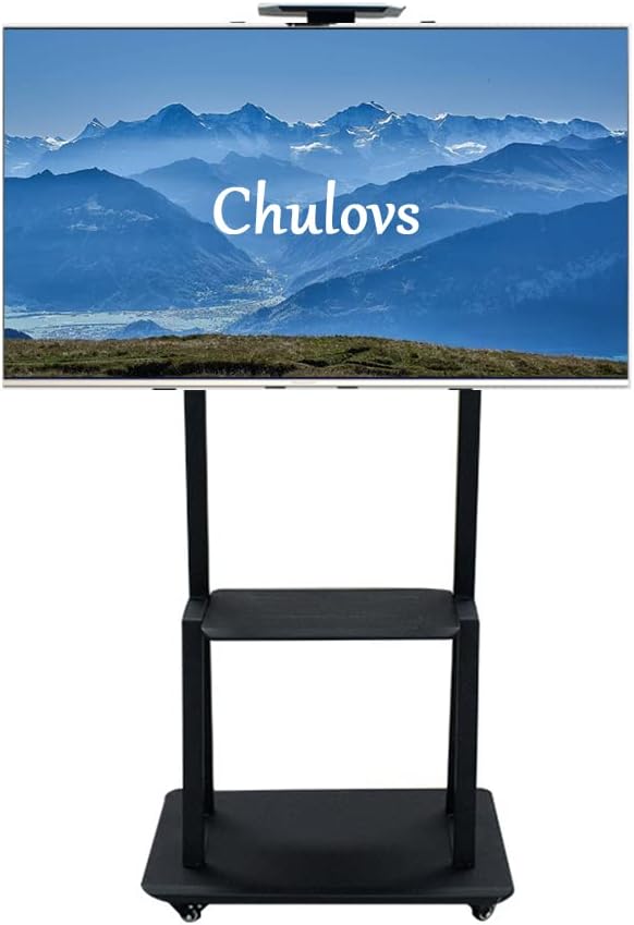 NEW Tall Mobile Floor TV Mount Stand Height Adjustable with Lockable Casters and 2 Tier AV Shelves for Extra Large Flat Panel LED LCD Plasma Screen up to 75 inch VESA 600x400 Load 70KG (Black)