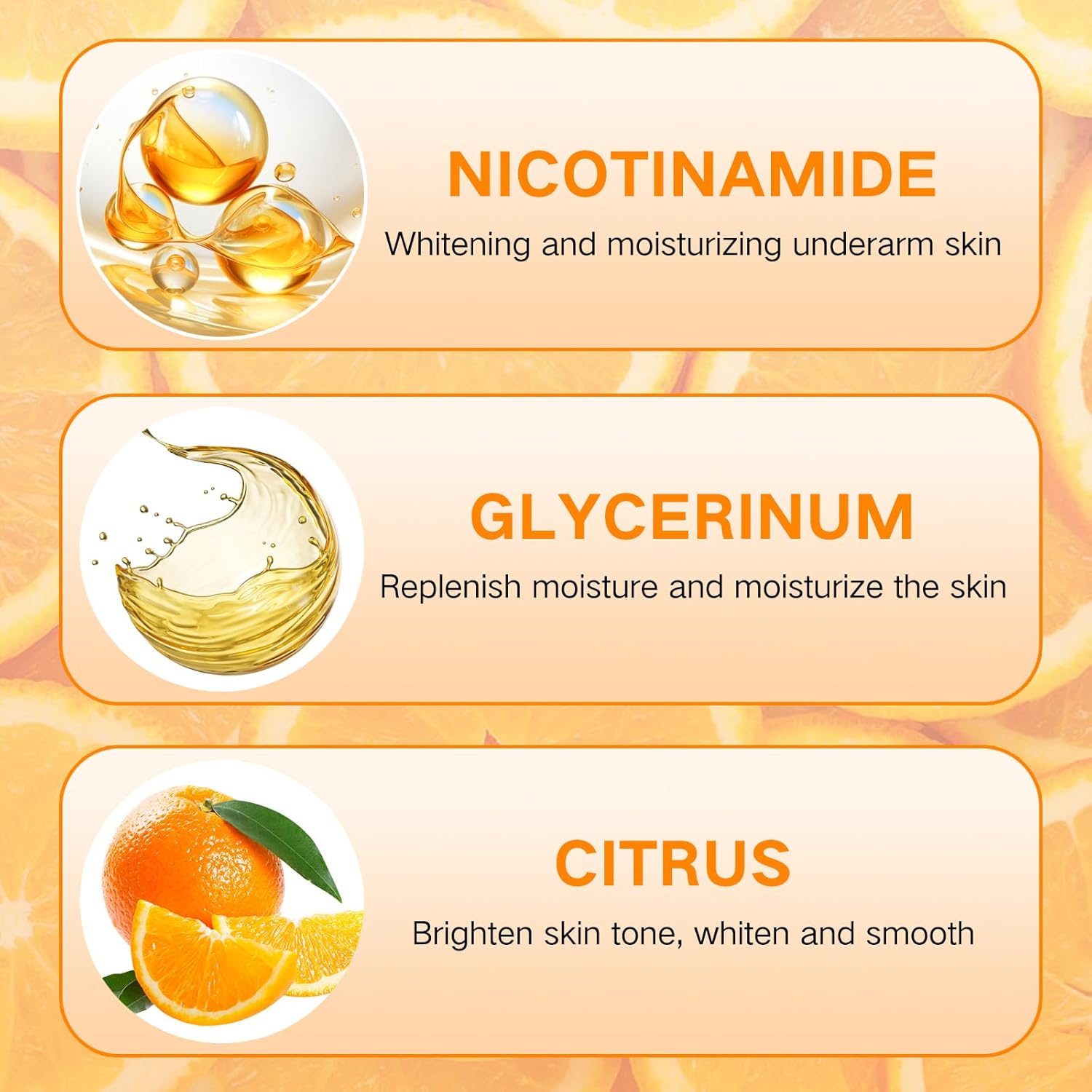 • Nicotinamide: Nicotinamide brightens and moisturizes underarm skin by inhibiting melanin transfer and enhancing the skin's moisture barrier for a smoother, more even skin tone.