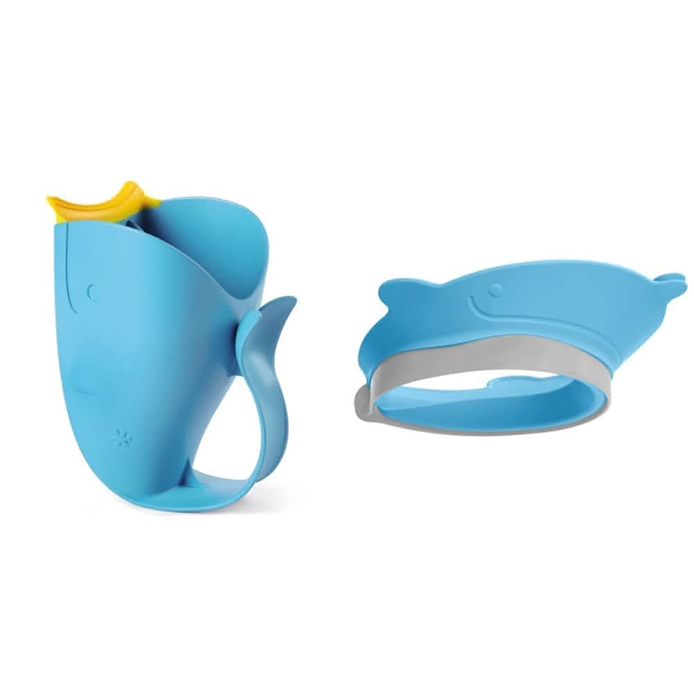 Our friendly Moby rinser is specially designed to keep water out of baby's eyes AND ears. The easy grip handle allows you to hold the rinser in one hand and baby in the other.