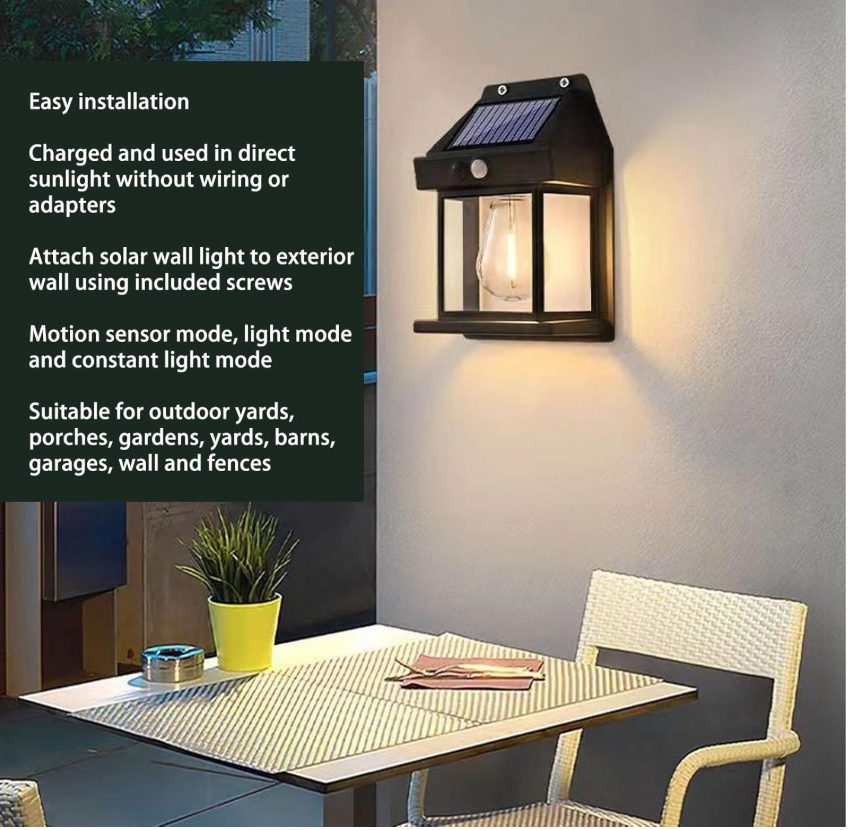 1pc New Solar Tungsten Wall Lamp, 3 Modes, Outdoor Villa Garden Courtyard Decoration Induction Lantern, Small Night Lamp - Nimall