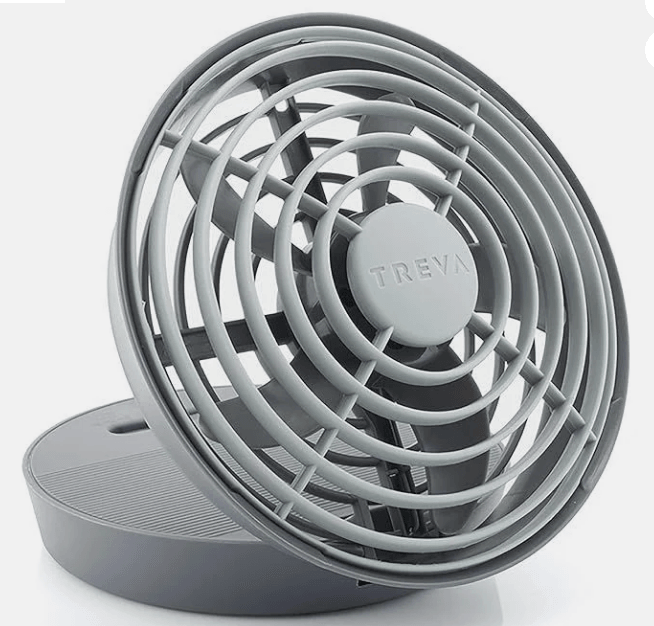 Discover the convenience of the Treva 5 Inch Portable Fan. With both battery and USB connectivity options, this fan is perfect for on-the-go cooling. Its compact size and sleek grey design make it a stylish and functional addition to any space. Stay cool wherever you are with the Treva 5 Inch Portable Fan.