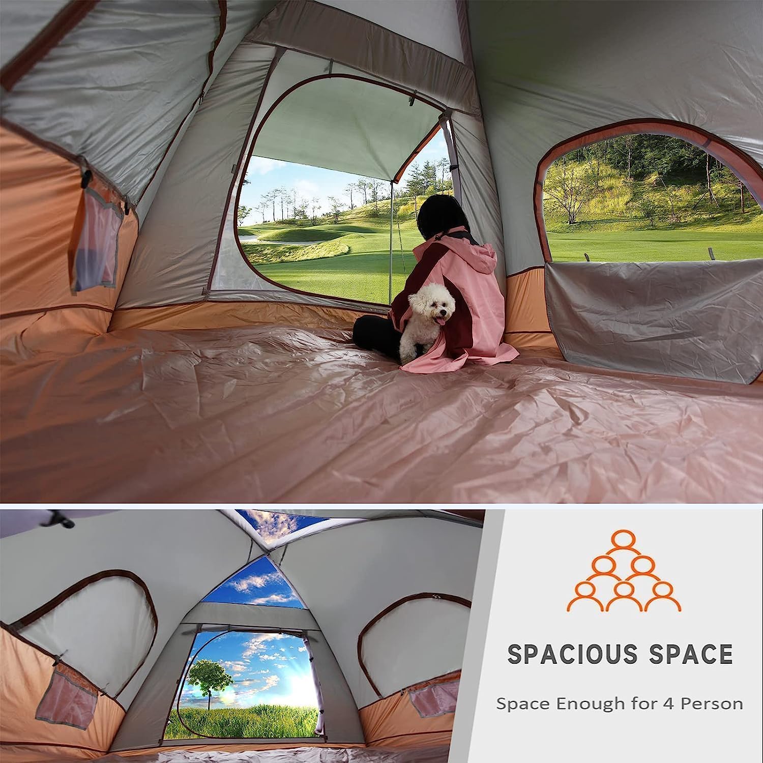 Umbalir Inflatable Camping Tent with Pump, Easy Setup 4 Season Glamping Tent with High Performance Inflatable Structure, 2-4 Persons Waterproof Windproof Outdoor Self-Supporting Air Tent Inflatable Family Party tent