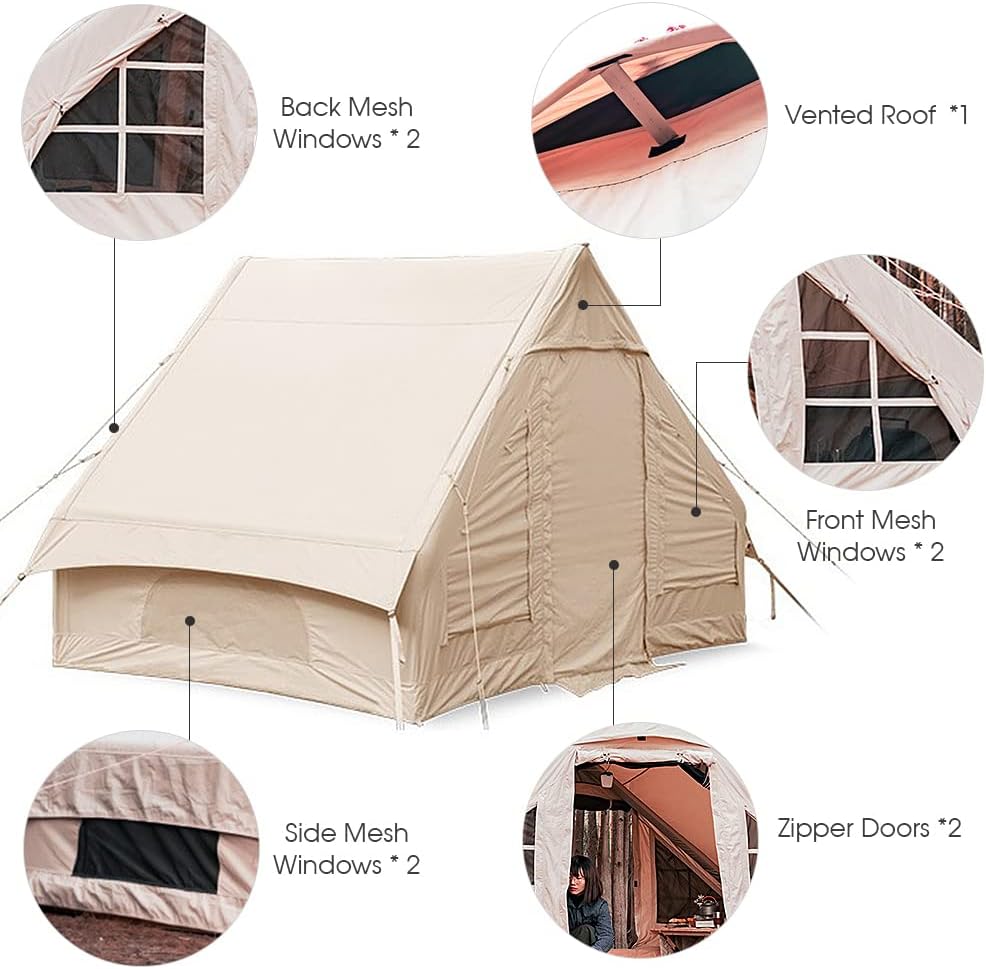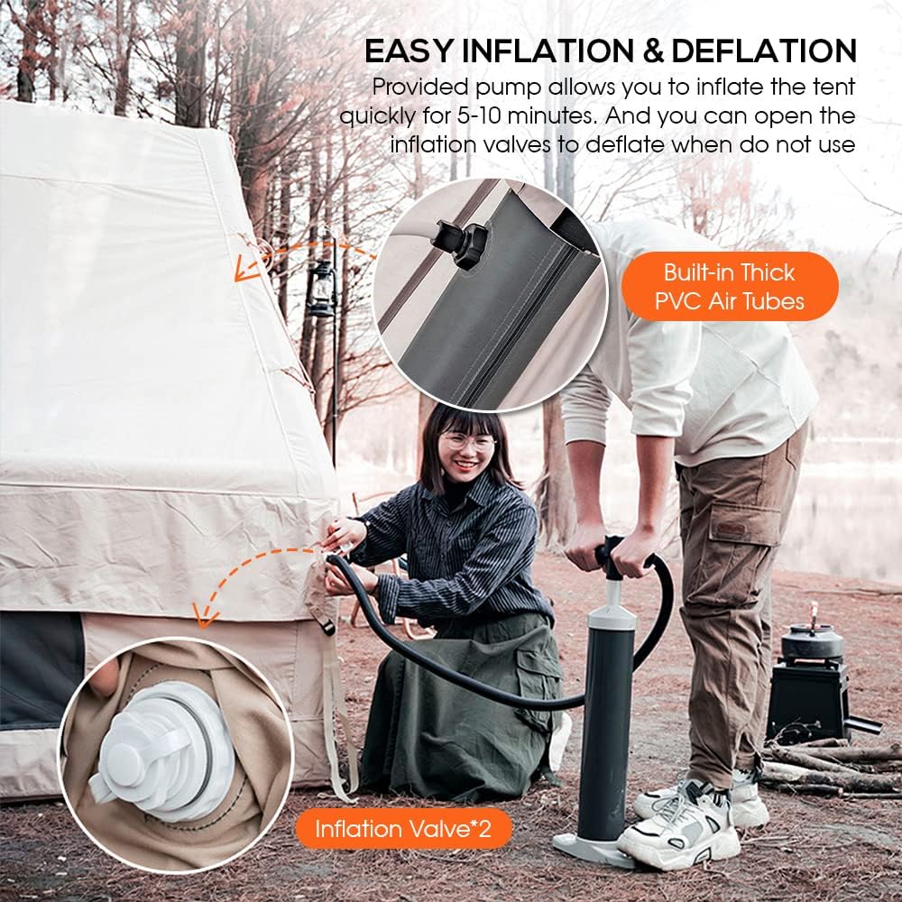 This tent can provide excellent ventilation and vision. It is great for those who go to park, beach, camping, fishing, etc. Specification: Outer Tent Material: Oxford (pu2000mm) Bottom Tent Material: Oxford (pu5000mm) Built-in Air Tube Material: PVC Fits for: 5-8 persons Iflation Valve Quantities: 2pcs Inflation Time: 5-10 mins Tent Size: 300 * 200 * 200 cm / 118.1 * 78.7 * 78.7 in Storage Bag Size: 74 * 42 * 39 cm / 29.1 * 16.5 * 15.4 in Package Size: 75 * 43 * 40 cm / 29.5 * 16.9 * 15.7 in Package weight: approx. 14.4 kg / 31.7 lb Package List: 1* Inflatable Tent ?(with 6* Windproof Rope) 1* Storage Bag 1* Inflation Pump 18* Stake