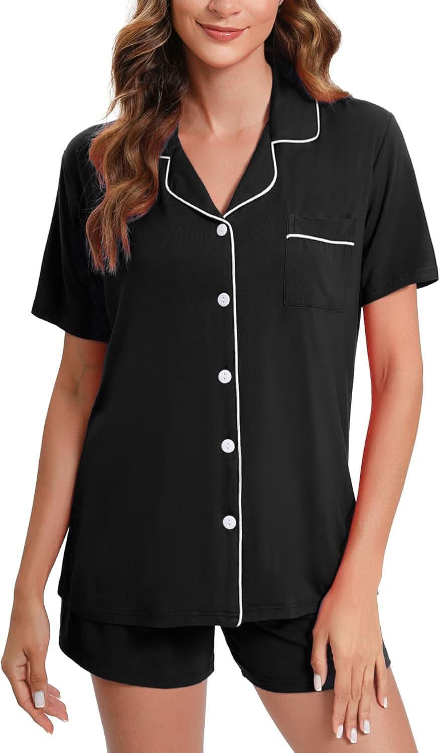 Women's Pajamas Set Soft Button Down Sleepwear Short Sleeve