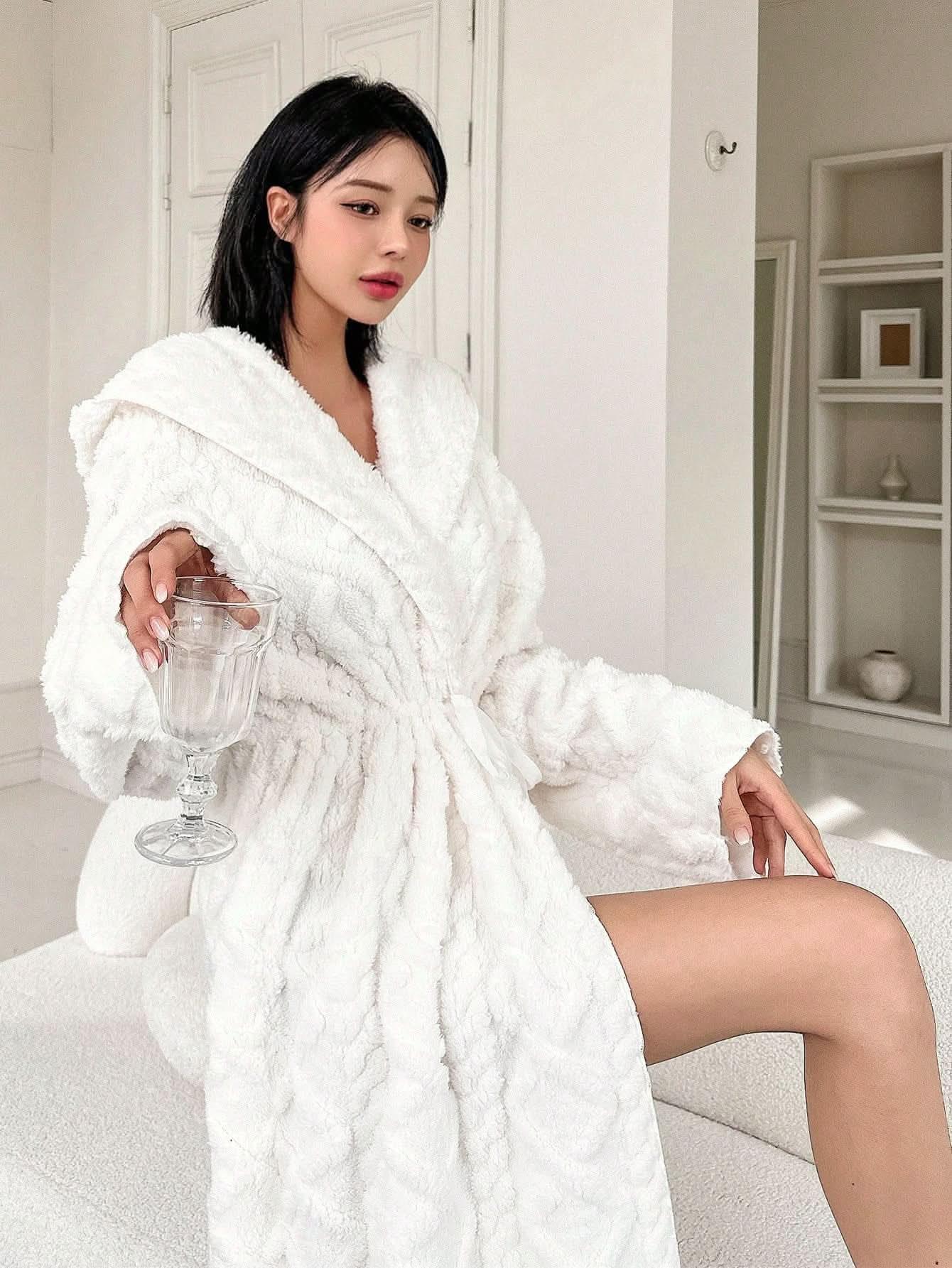 Solid Velvet Hooded Bathrobe Womens Lingerie